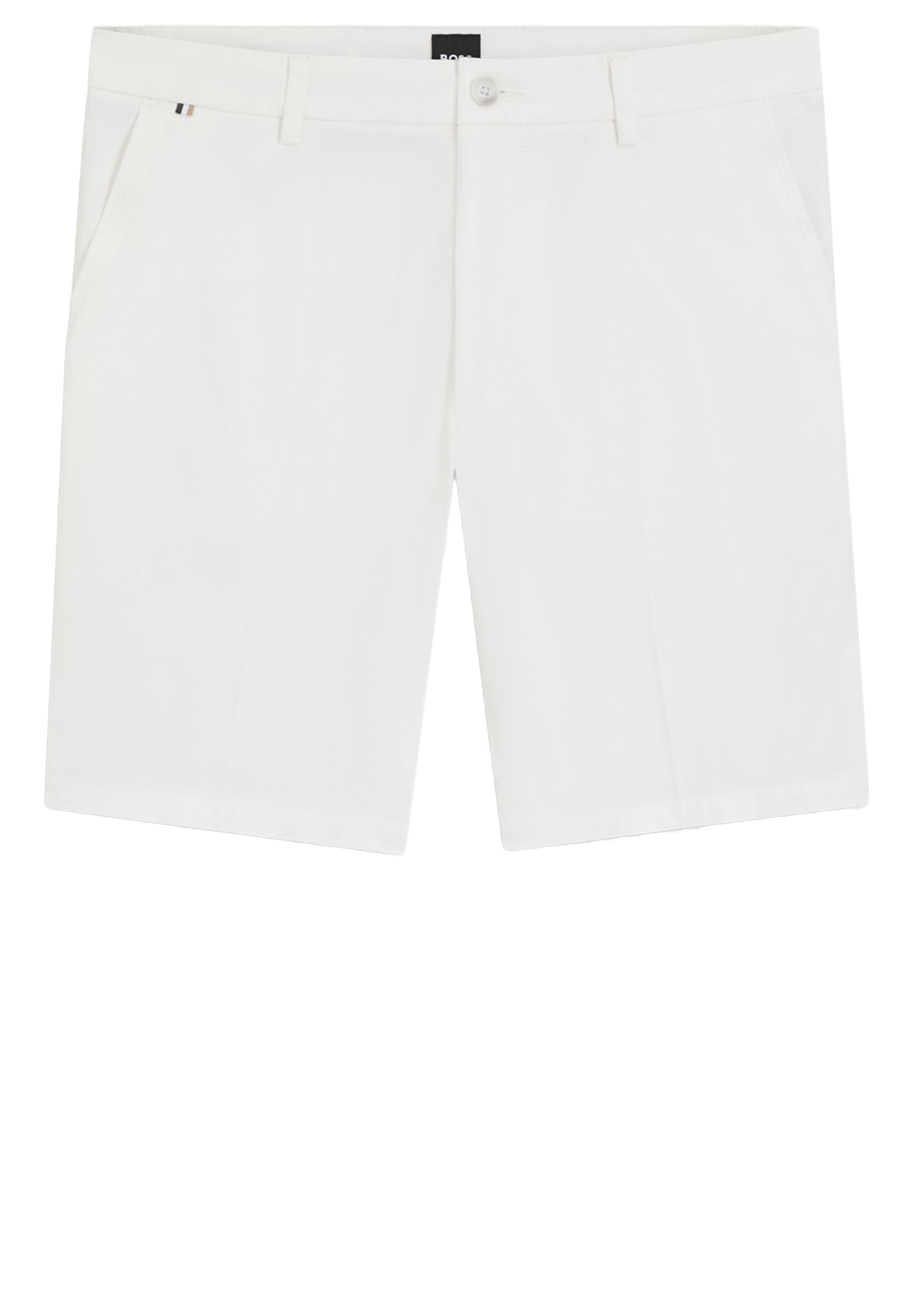 Diese vielseitigen Shorts von BOSS Menswear sind aus Stretch-Baumwolle gefertigt und bieten optimale Bewegungsfreiheit. Sie haben eine moderne Passform mit schmal zulaufendem Bein. Charakteristisches Streifenmuster mit Flaggenmotiv.