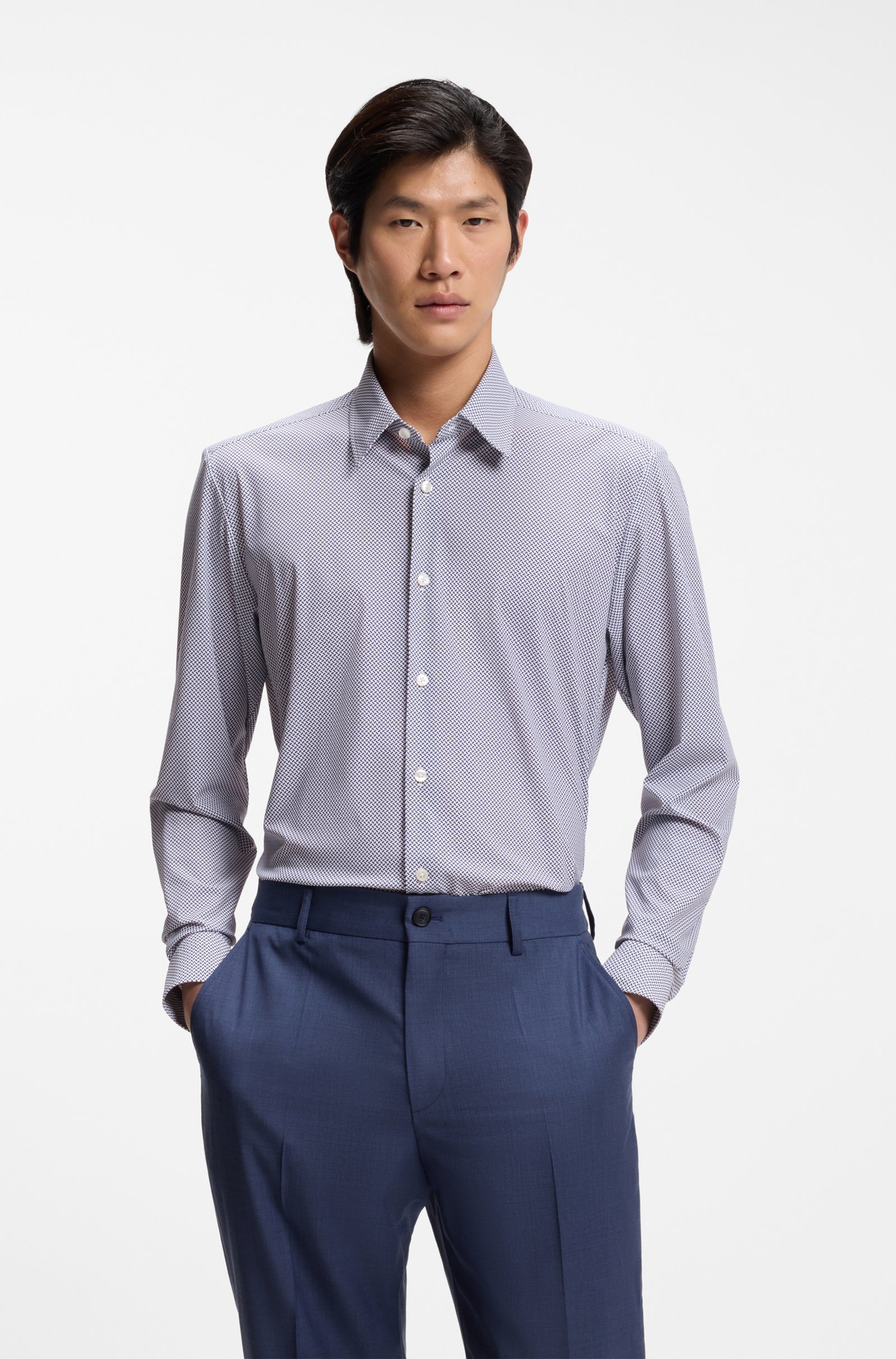 Das BOSS Hemd in entspanntem Regular-Fit ist mit einem zeitgemäßen Motiv bedruckt. Gefertigt aus Performance-Stretch-Jersey für optimale Bewegungsfreiheit.