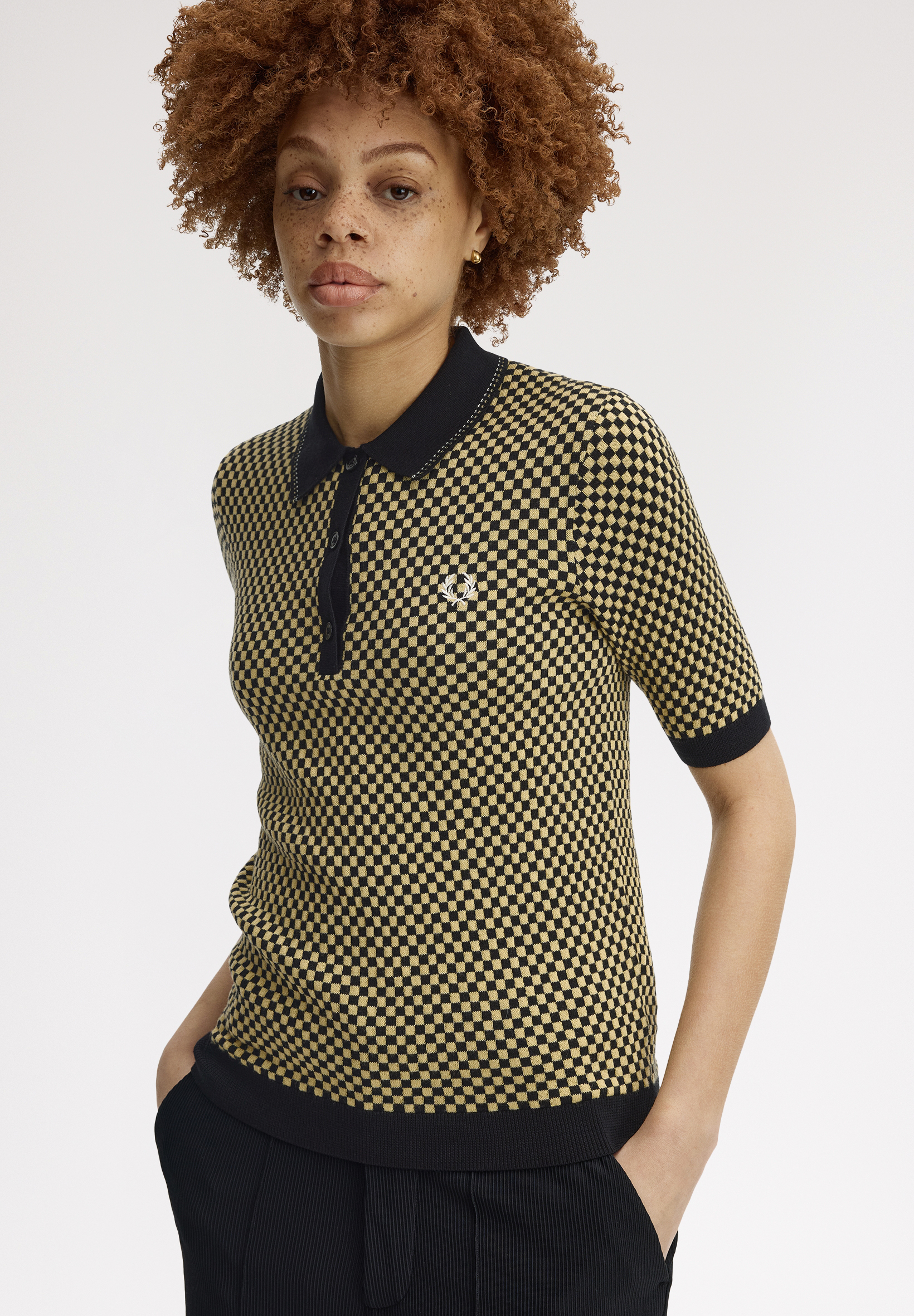 Fred Perry Strick-Poloshirt mit Schachbrettmuster