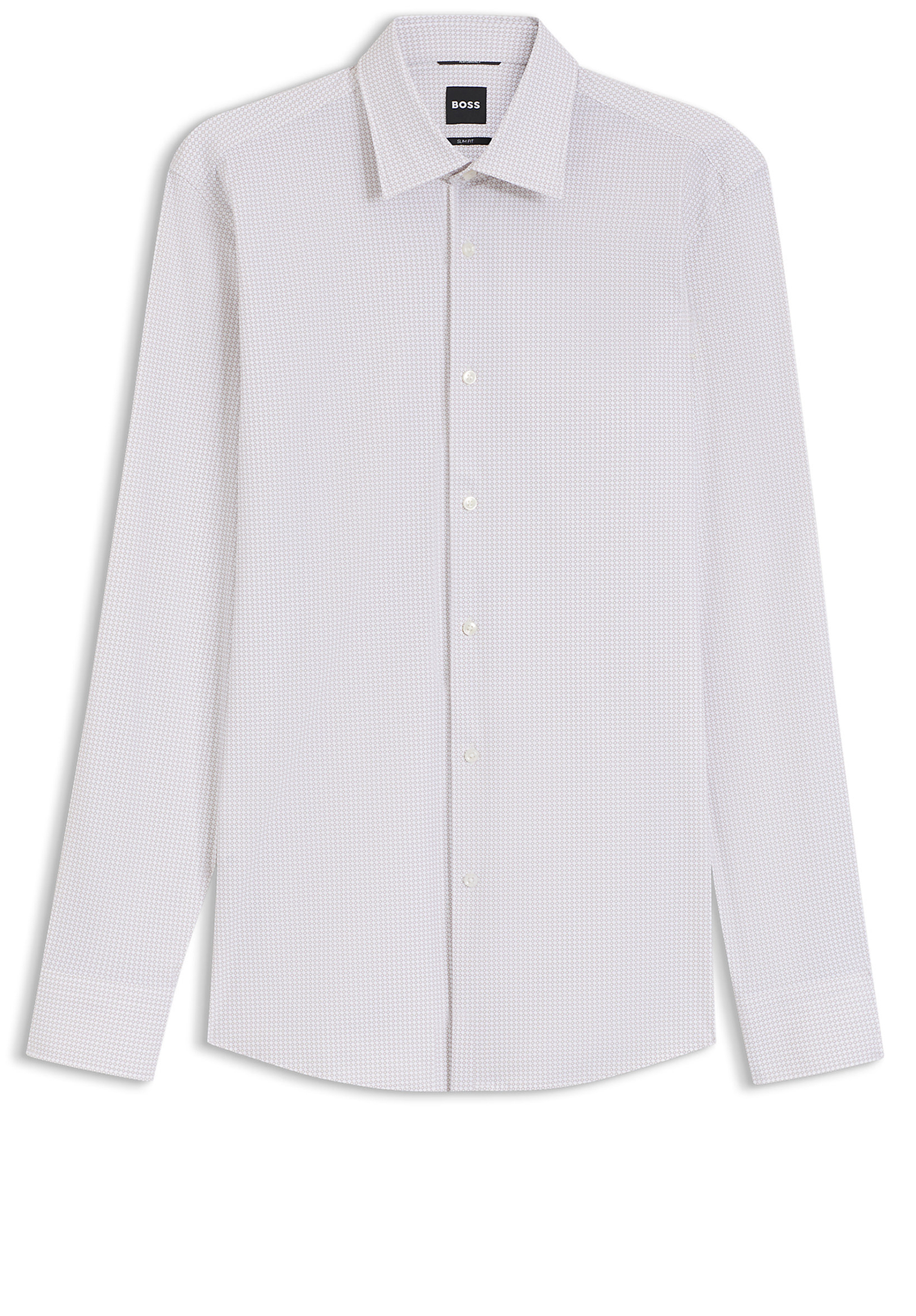 Dieses BOSS Hemd aus Super-Stretch-Jersey mit zeitgemäßem Allover-Print bietet flexiblen Tragekomfort. Eleganter, schmaler Schnitt.