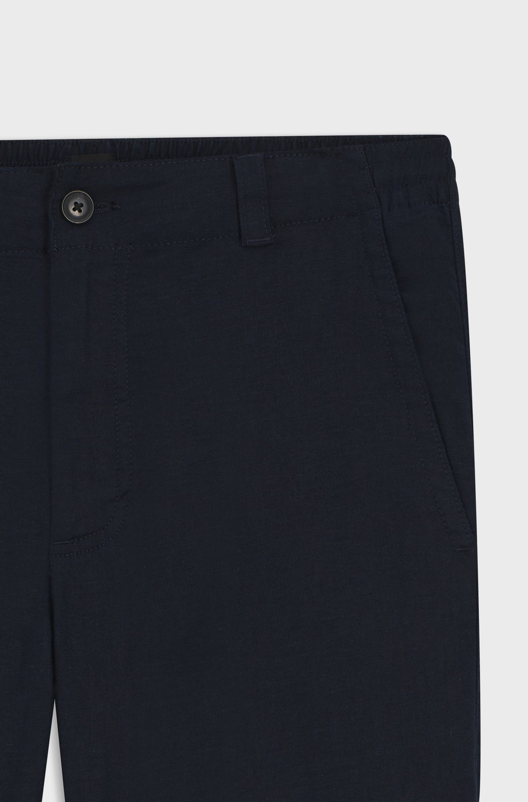Mit einem elastischen hinteren Bund für eleganten Tragekomfort ist die BOSS Hose Sanderson-L-3 eine vielseitig kombinierbare Grundlage. Sommerlicher Leinen-Mix. Dezentes Logo-Detail.