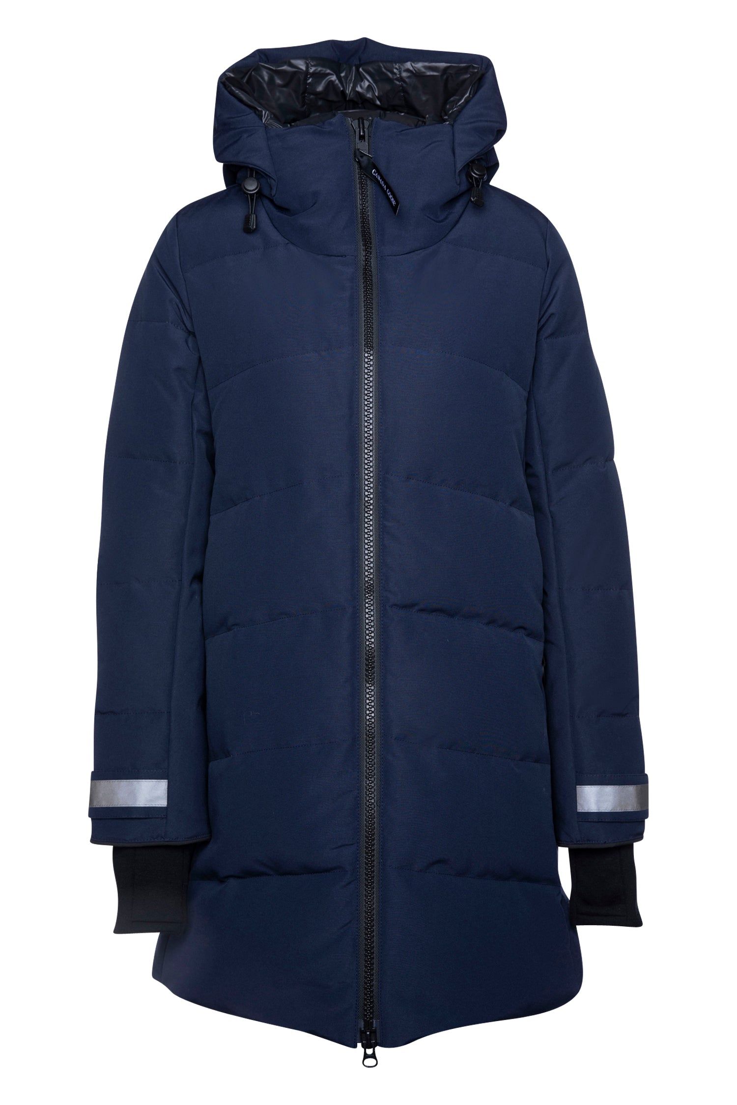 Der Merritt-Parka bietet zuverlaessigen Schutz vor Kaelte. Die A-Linien-Silhouette und das Chevron-Quilten sorgen fuer eine femininen Look, waehrend funktionale Elemente wie reflektierende Buendchen und ein verstaubarer D-Ring verborgen werden koennen, wenn sie nicht benoetigt werden. Innere Rucksackgurte ermoeglichen das Tragen, wenn die Temperaturen steigen.