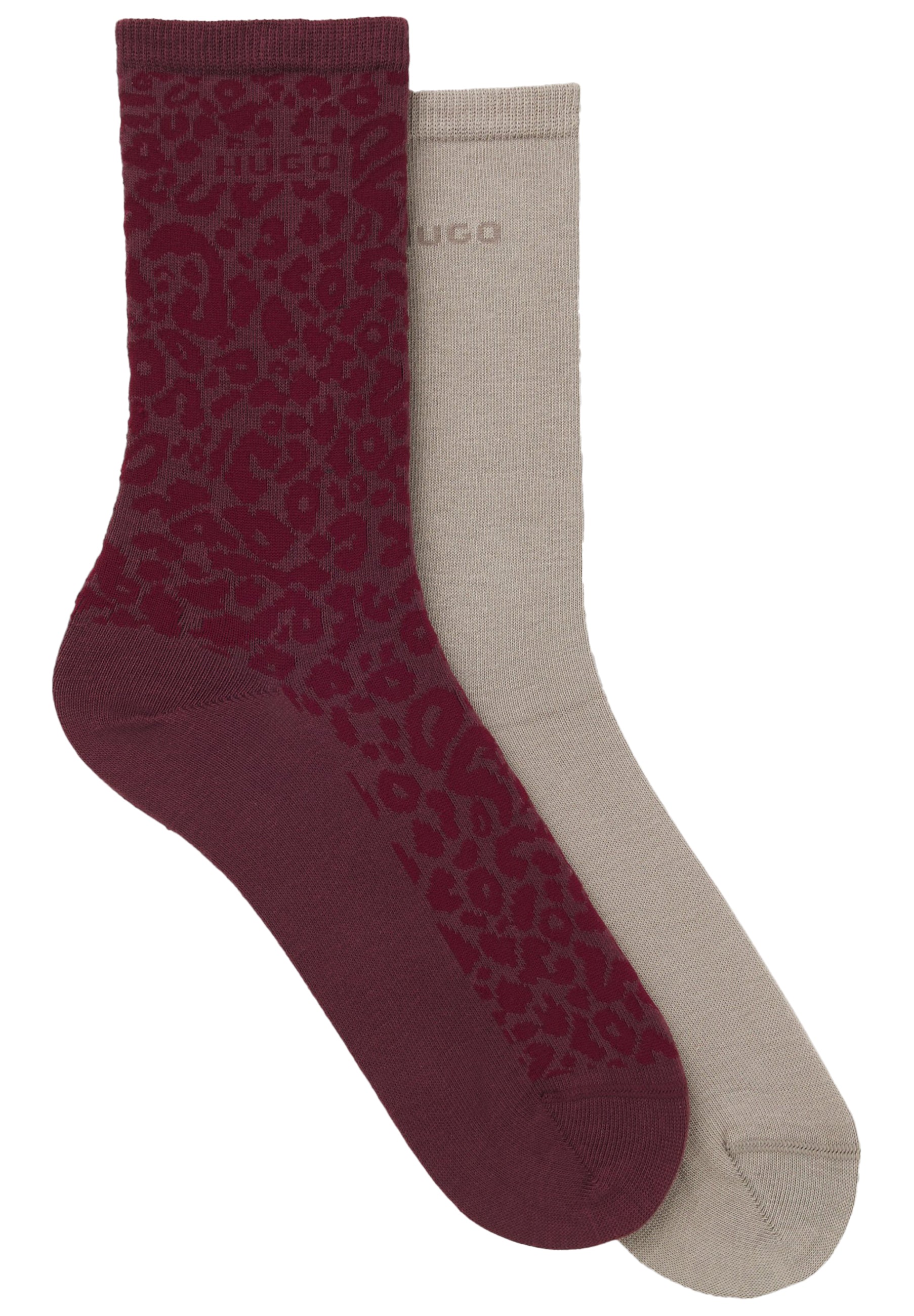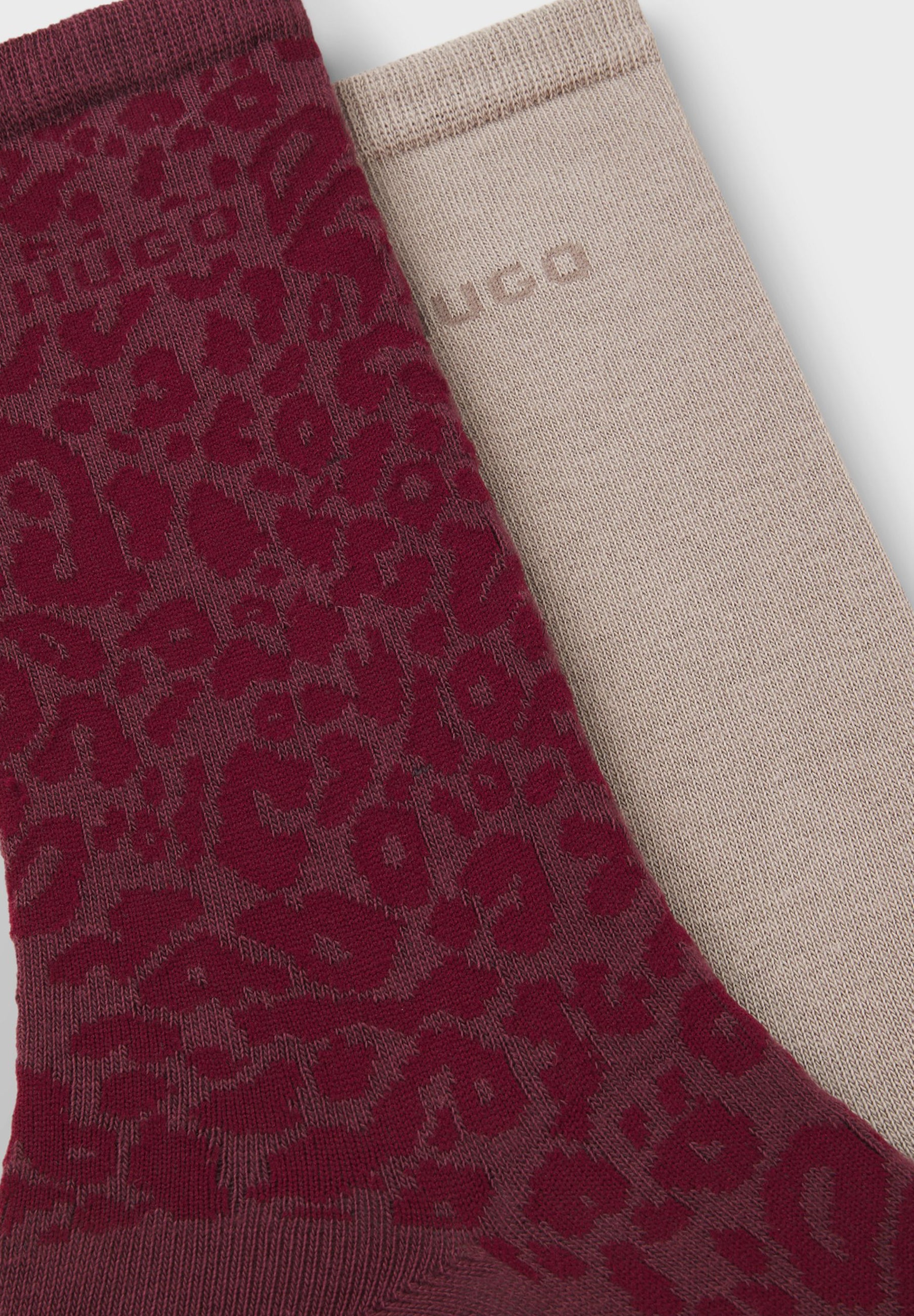 Die zwei Paar mittelhohen HUGO Socken mit markantem Leoparden-Muster verleihen deinen Looks einen wilden Touch.