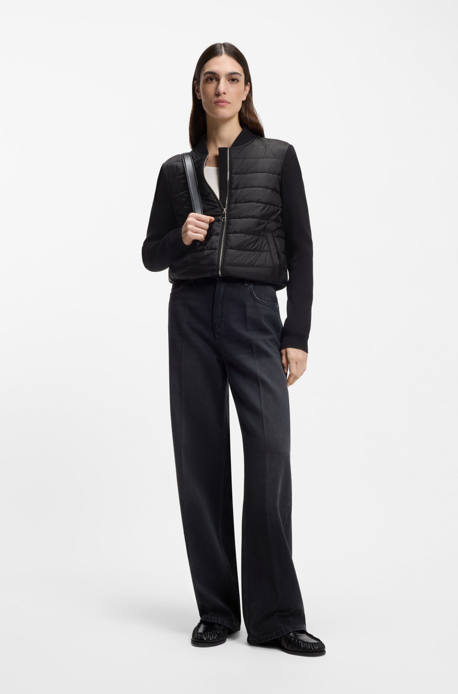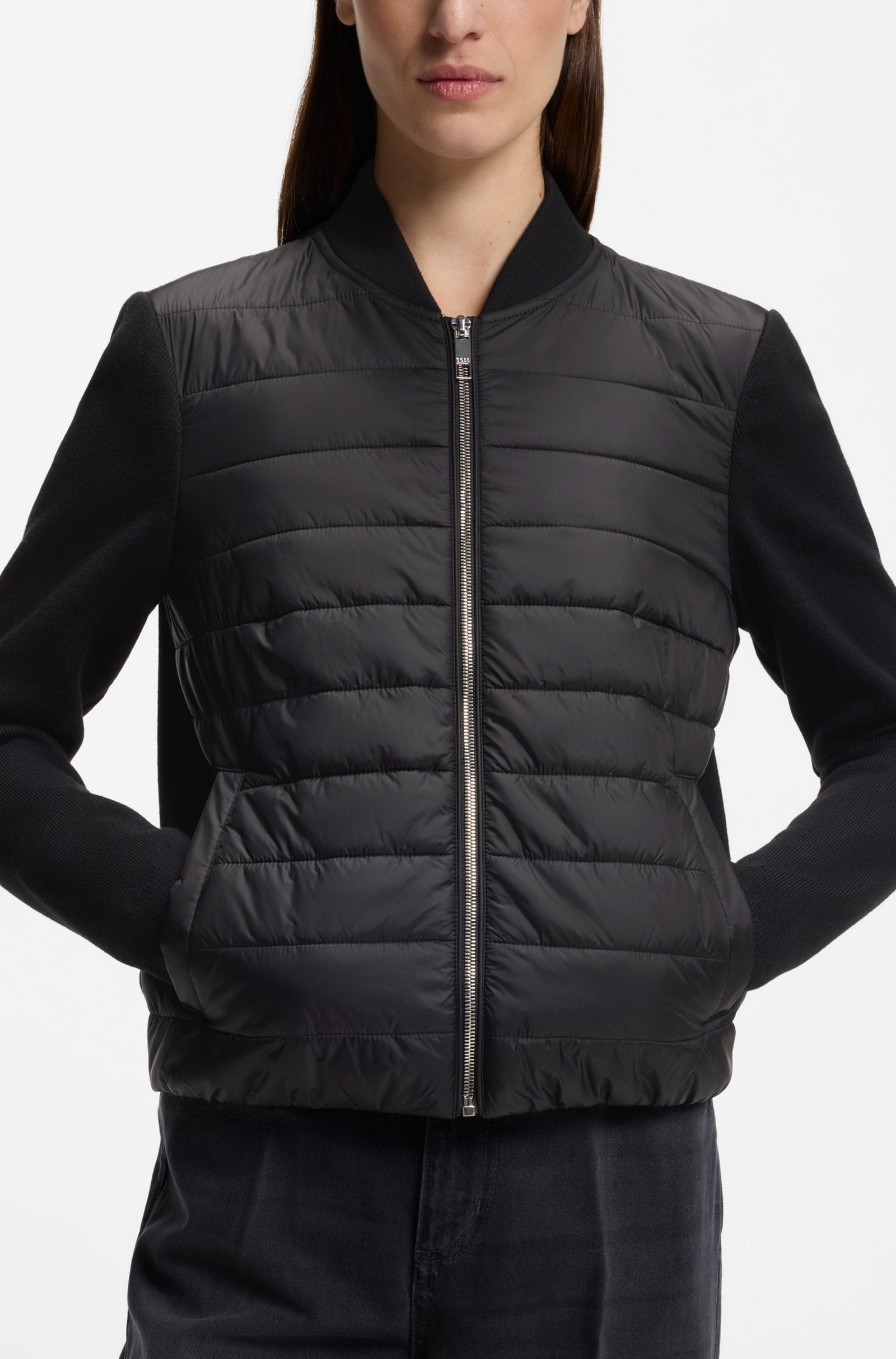 Perfekt für jede Jahreszeit: Die leichte BOSS Jacke kombiniert einen wattierten Rumpf mit Details aus Stretch-Strick. Wasserabweisend. Reißverschluss. Seitliche Taschen.