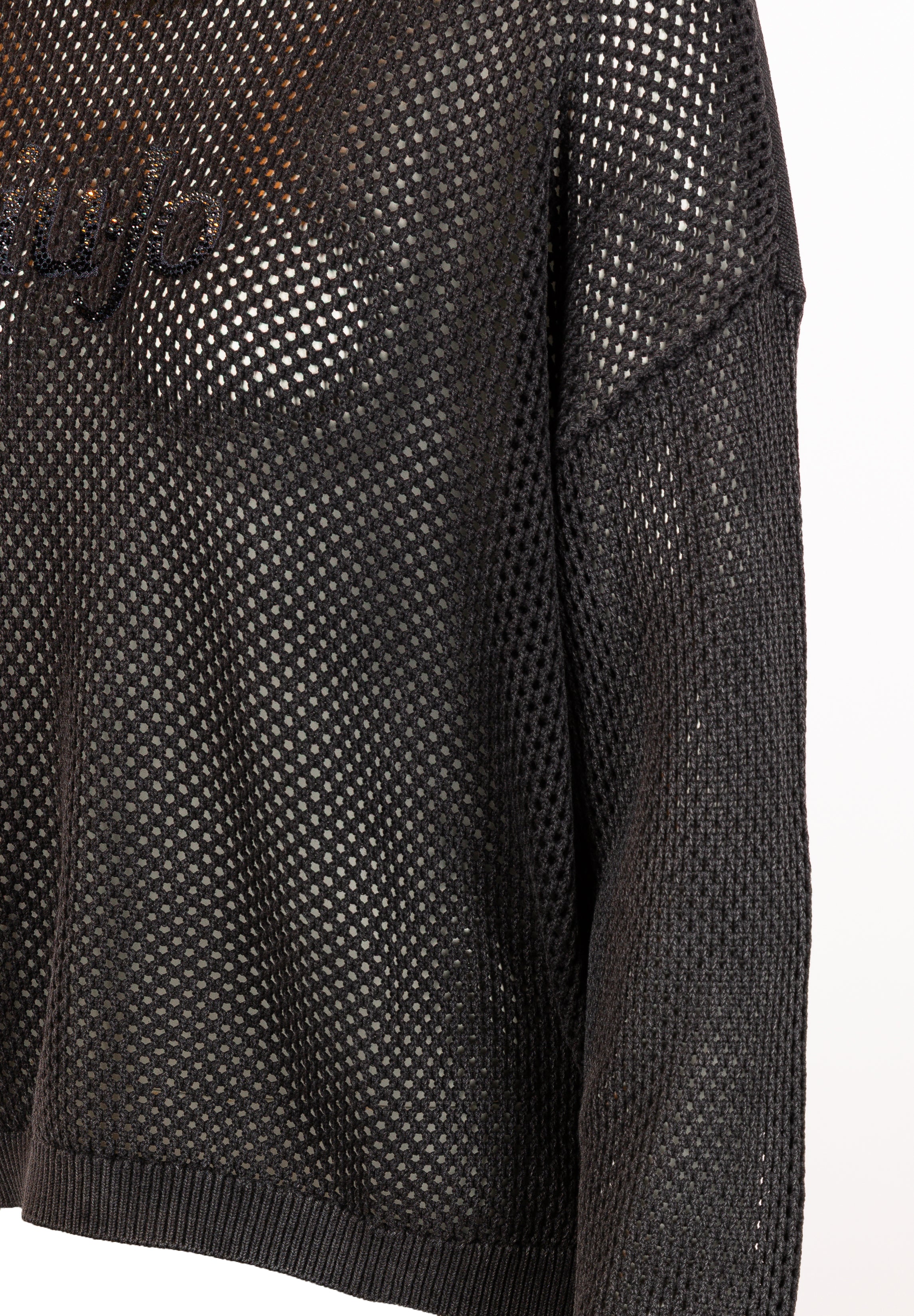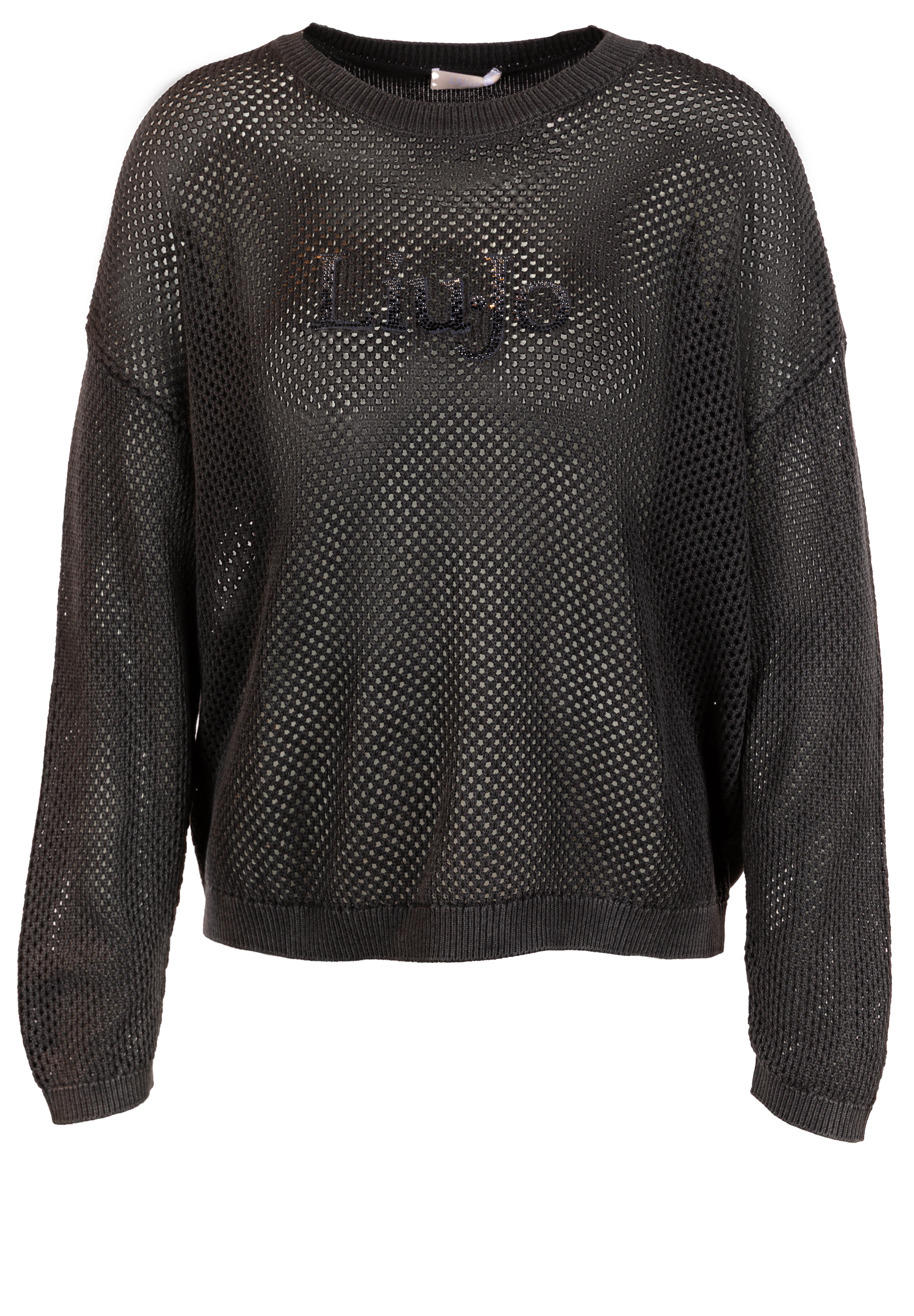 Pullover von LIU JO mit Rundhalsausschnitt aus Baumwolle. Aus Lochstrick gefertigt und mit Strass-Logo auf der Brust.