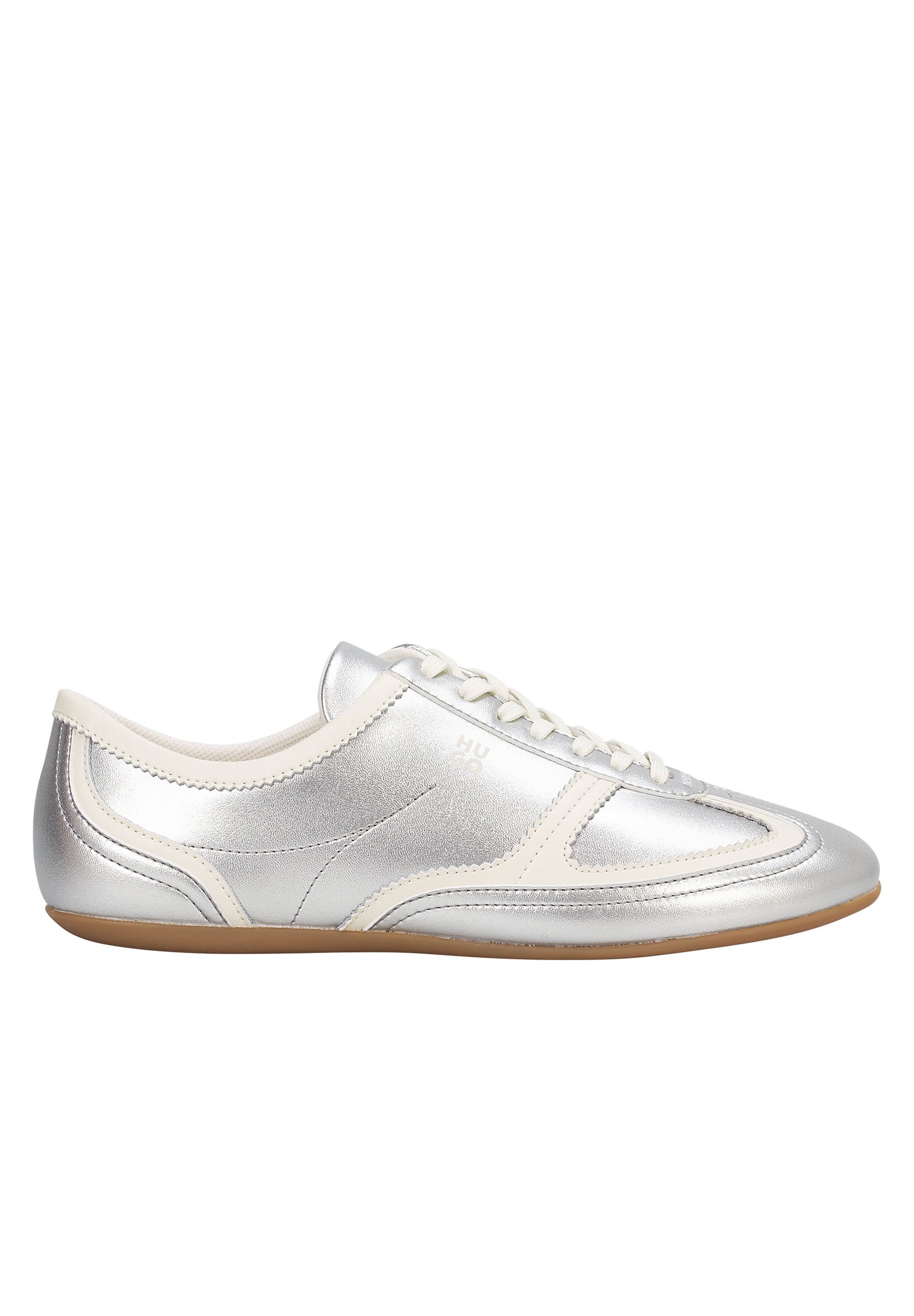 Mit ihrem silberfarbenen Obermaterial und den unverwechselbaren Zick-Zack-Details verleihen diese HUGO Womenswear-Trainer jedem Look eine kreative Neigung. Gestapelte Logos. Komfort-Einlegesohle.