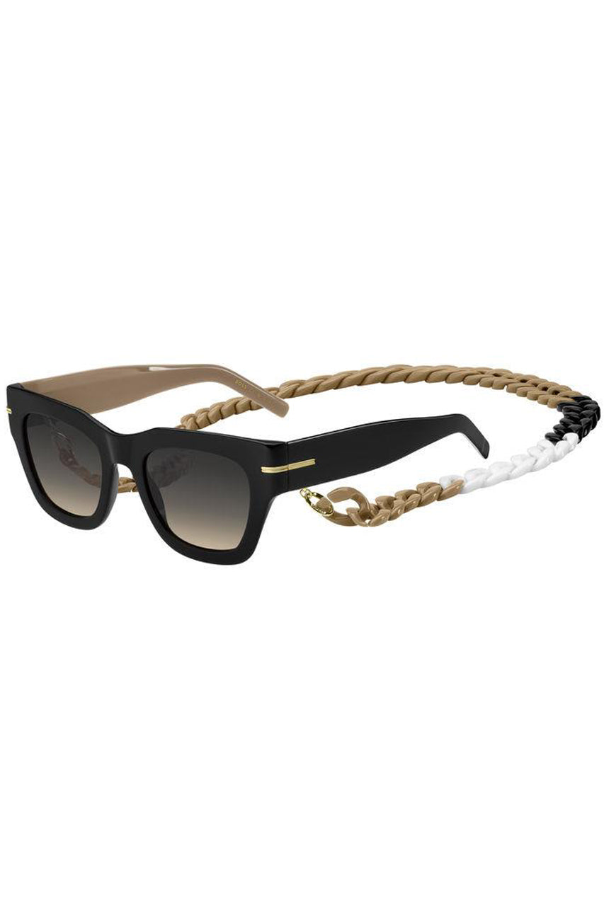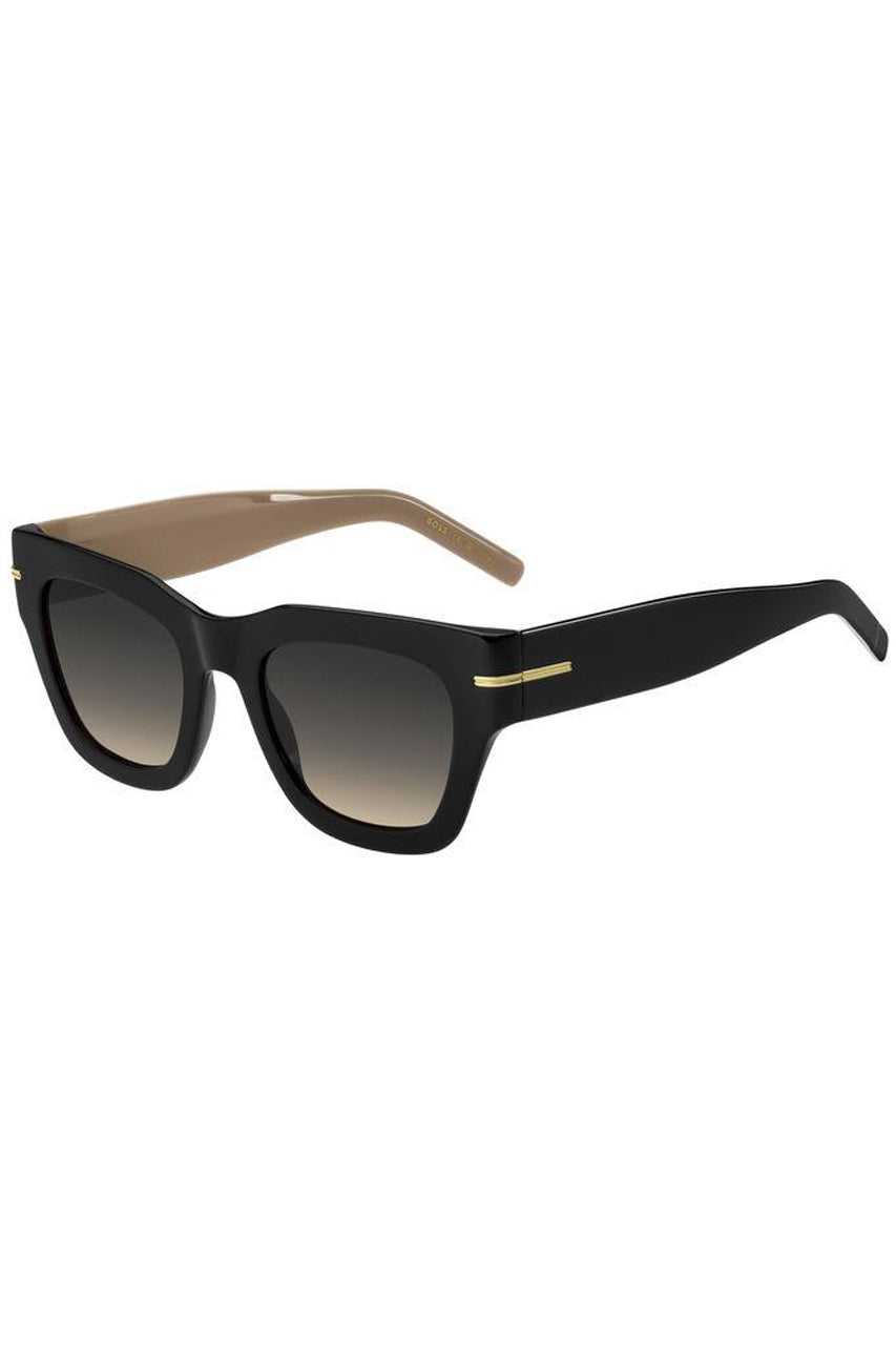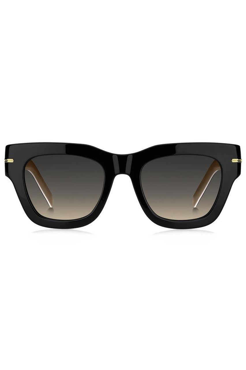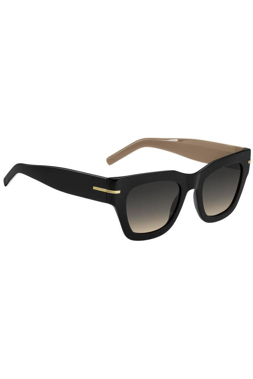 Ganz im Stil von BOSS verkörpert diese Sonnenbrille für Damen moderne Eleganz. Sie verfügt über ein übergroßes, aber leichtes und umweltfreundliches Gestell aus Öko-Acetat aus erneuerbaren und recycelbaren Ressourcen, und sogar die Sonnengläser sind nachhaltig. Die Oversize-Proportionen werden von einem ziselierten Metalleinsatz ergänzt, der die Vorderseite und die Bügel umschließt. Die Kette in den Farben der Marke macht diese Brille zu einem tollen Accessoire.
