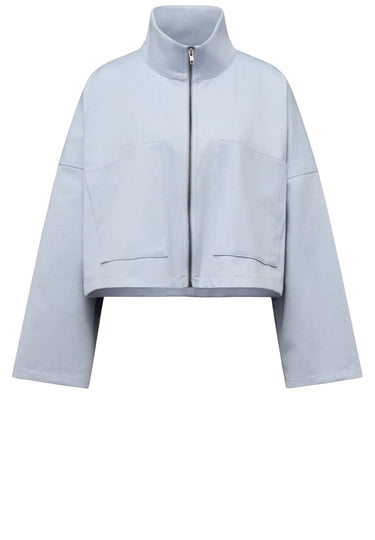 Oversized Kastenjacke ELSTOW_1 von DRYKORN mit markanten aufgesetzten Taschen. Das Design kombiniert eine kurze Rückenlänge mit einem Stehkragen und weiten Ärmeln.