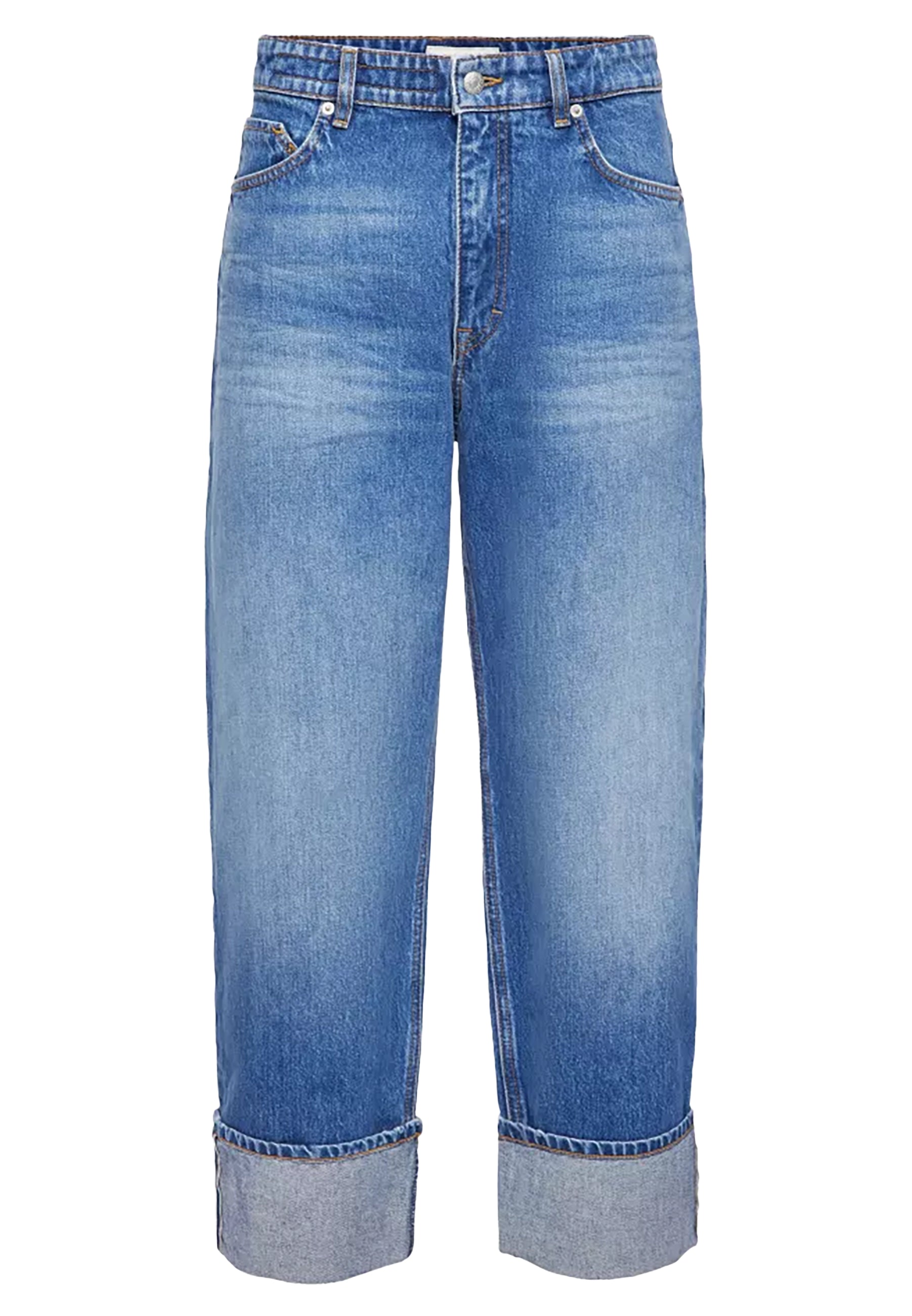 Eine lässig geschnittene Denim mit konischem Beinverlauf im tapered Fit. Die leicht verkürzte Silhouette mit fixiertem Aufschlag verleiht dem Design einen zeitgemäßen Look.