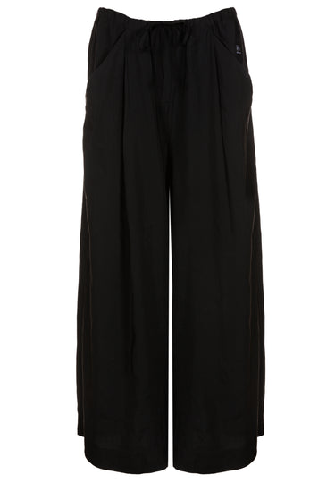 Hose Herma von ELIAS RUMELIS mit hoher Leibhöhe und ausgestelltem Bein. Mit Bundfalte, Paspeltaschen hinten und besonderer Eingrifftaschenverarbeitung.