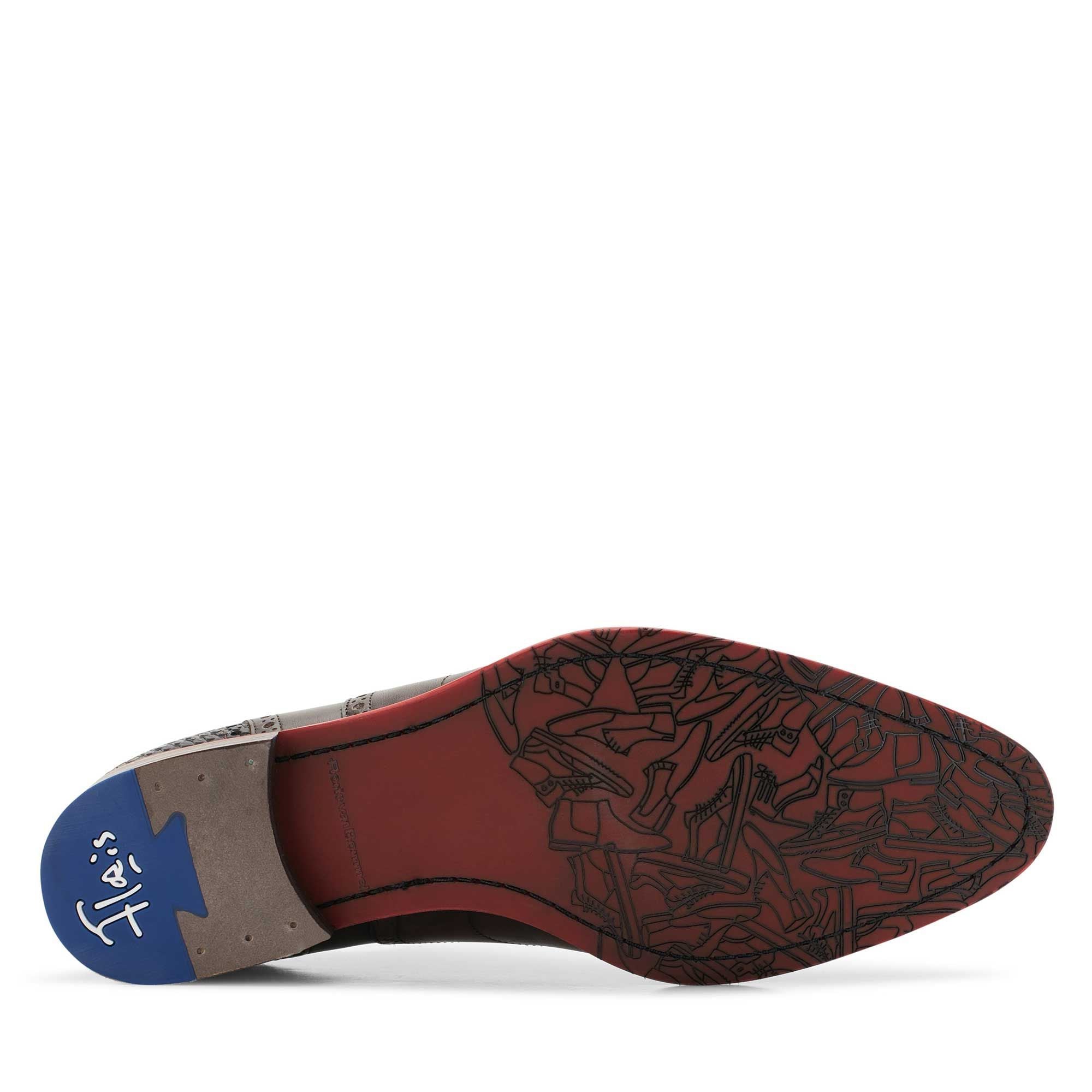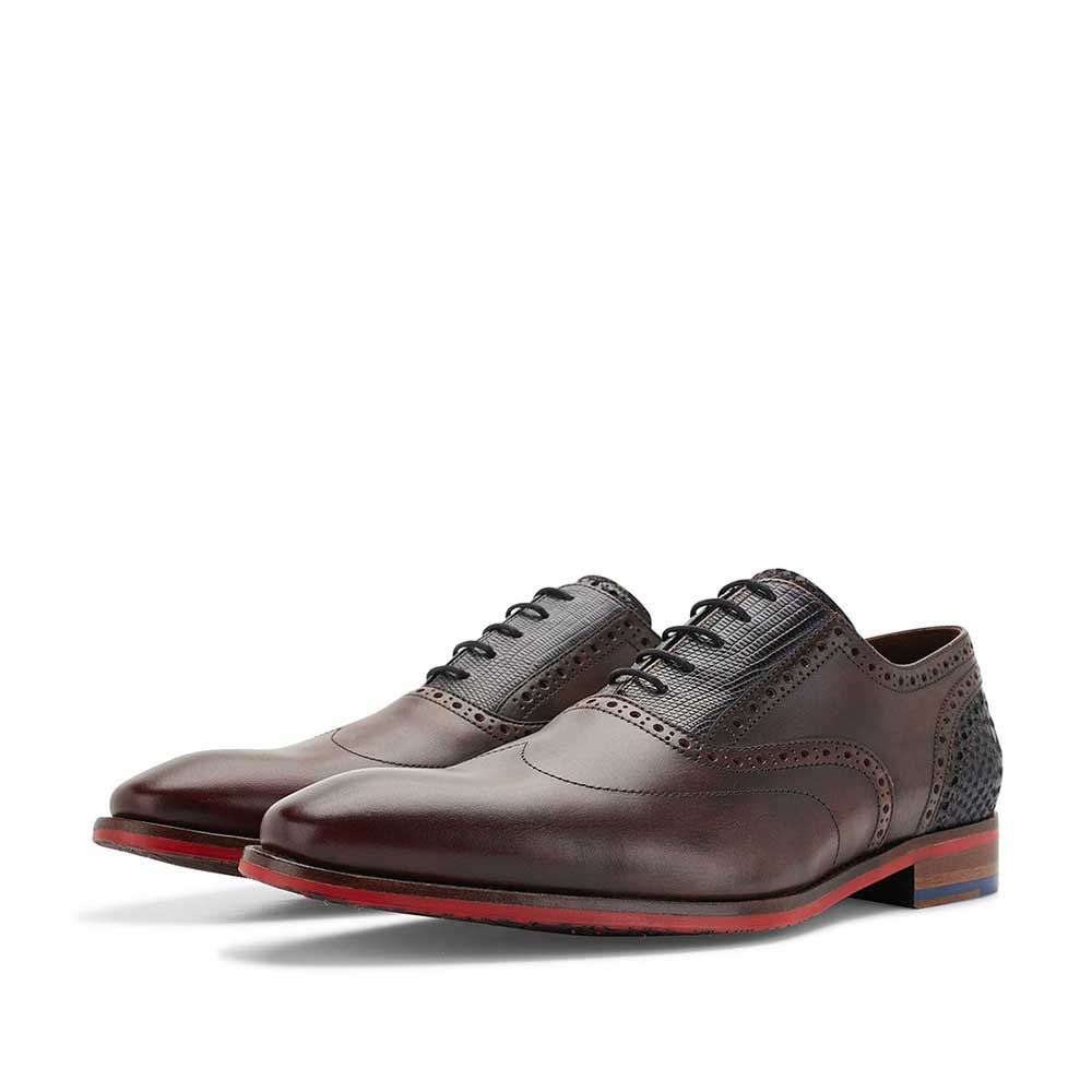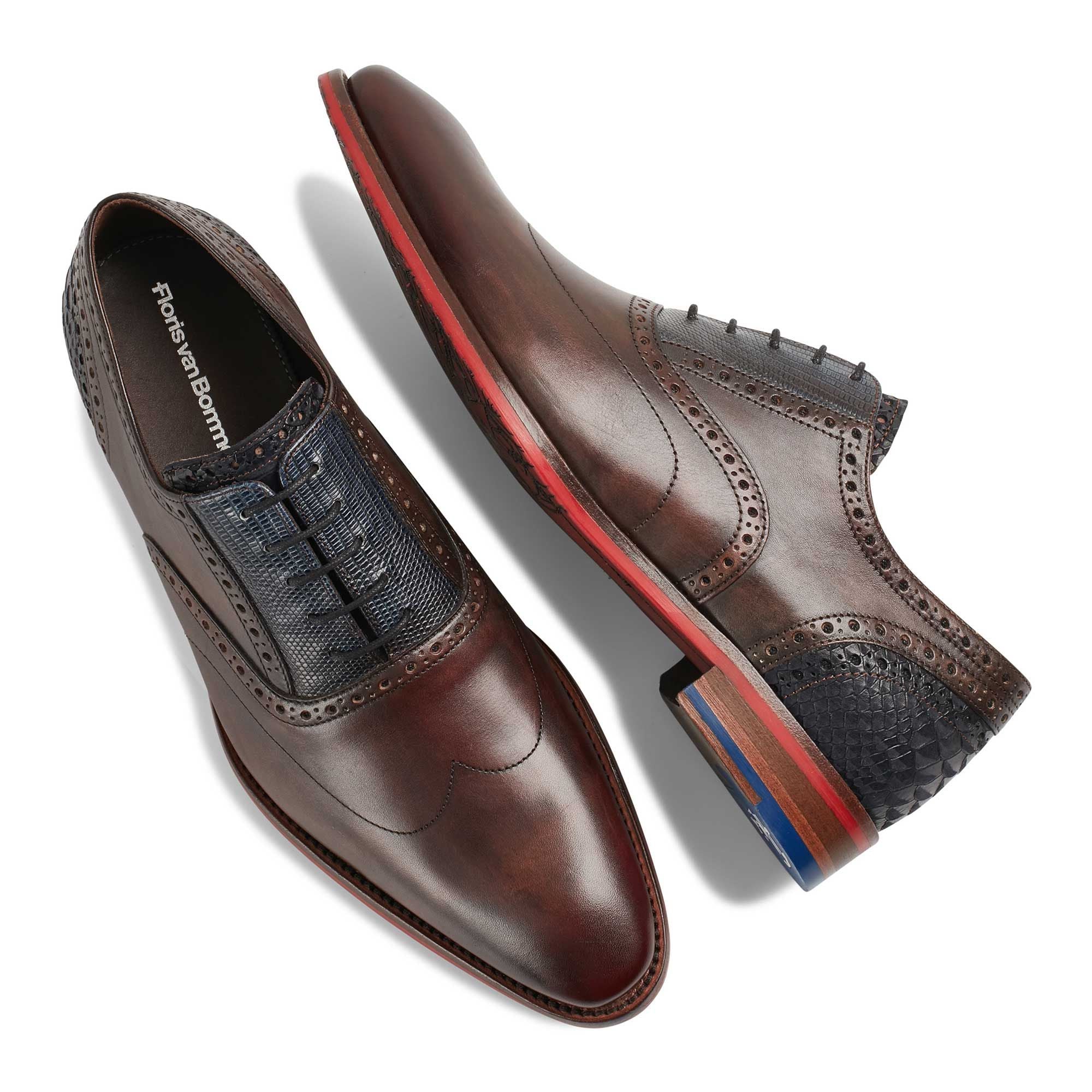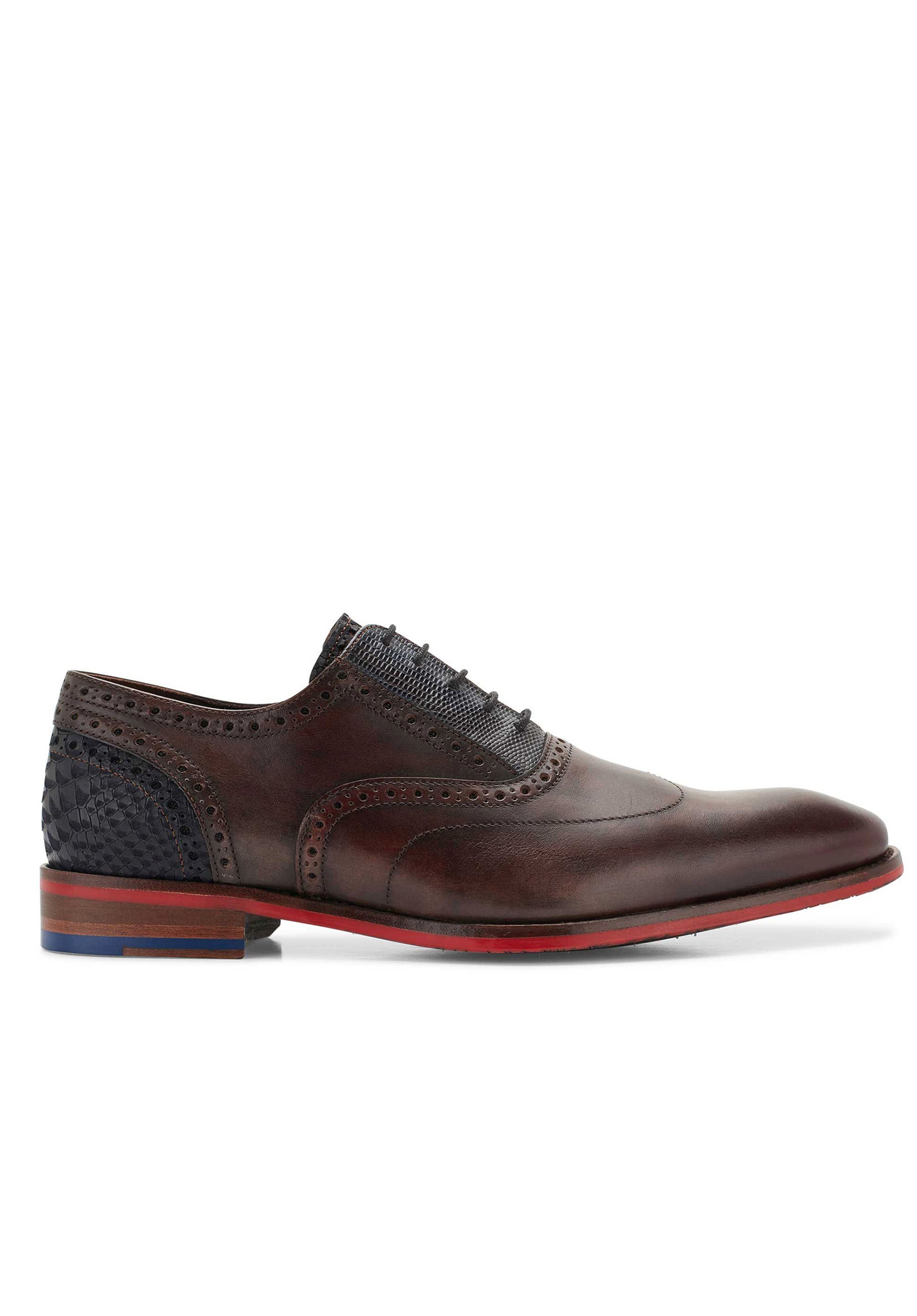 Der Schnürschuh von FLORIS VAN BOMMEL präsentiert sich als eleganter Klassiker mit modernem Twist. Er ist aus verschiedenen Ledersorten gefertigt und überzeugt durch eine flügelförmige Vorderkappe mit dekorativem Lochmuster. Eine farblich abgesetzte Sohle rundet das edle Design markant ab.