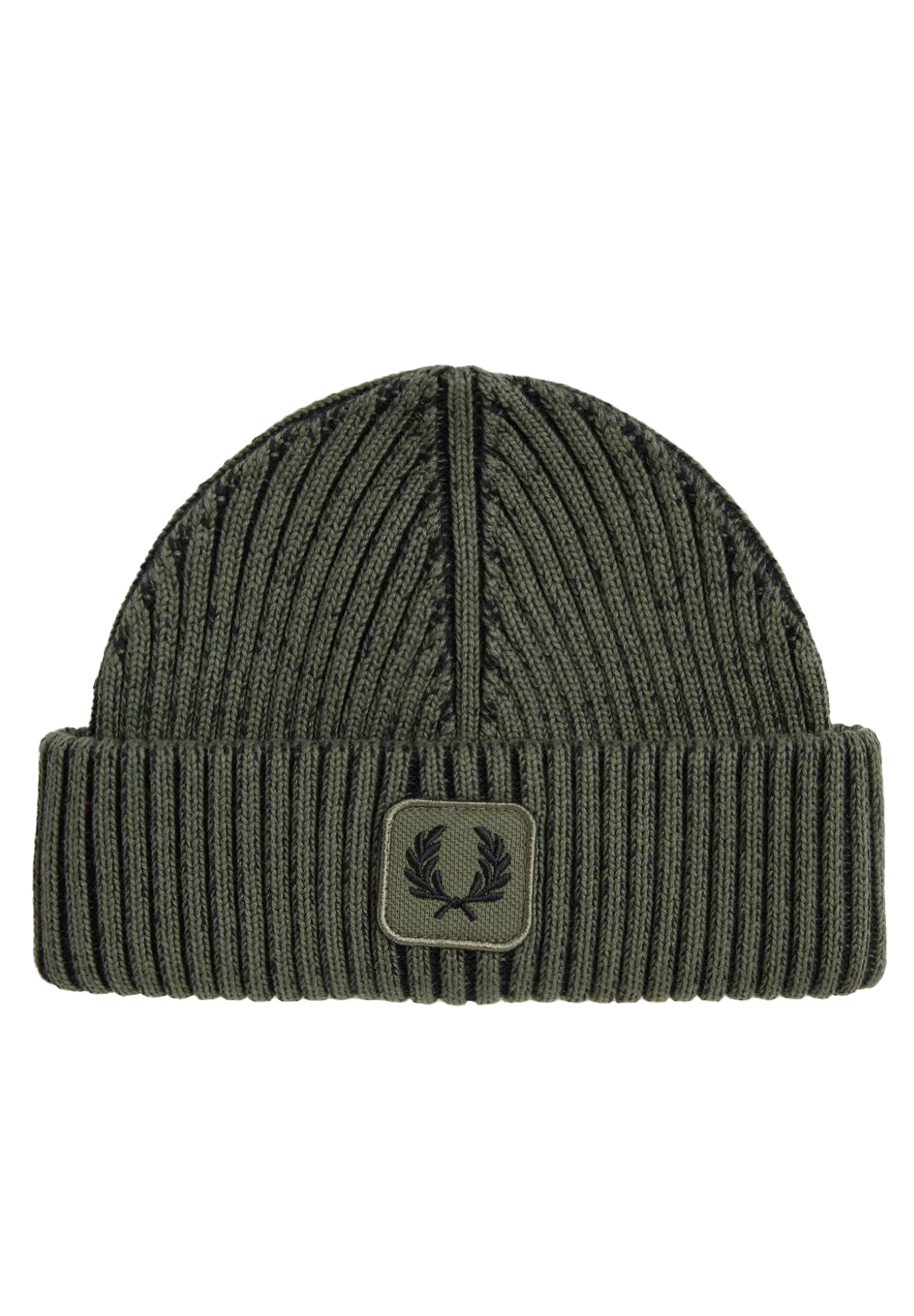 Unsere Strickmütze aus gekämmter Baumwolle ist mit einem mittigen Aufnäher mit aufgesticktem Lorbeerkranz versehen.