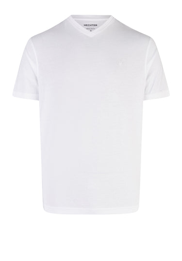 Dieses T-Shirt Regular Fit von HECHTER PARIS mit V-Neck zeigt sich in einen maskulinen Look. Während beste Single Jersey Baumwolle einen bequemen Tragekomfort garantiert, sorgt die hochwertige Qualität für eine optimale Formstabilität. Top Begleiter für die Freizeit oder lässig unterm Sakko zu tragen.Das Shirt kommt im praktischen Doppelpack.