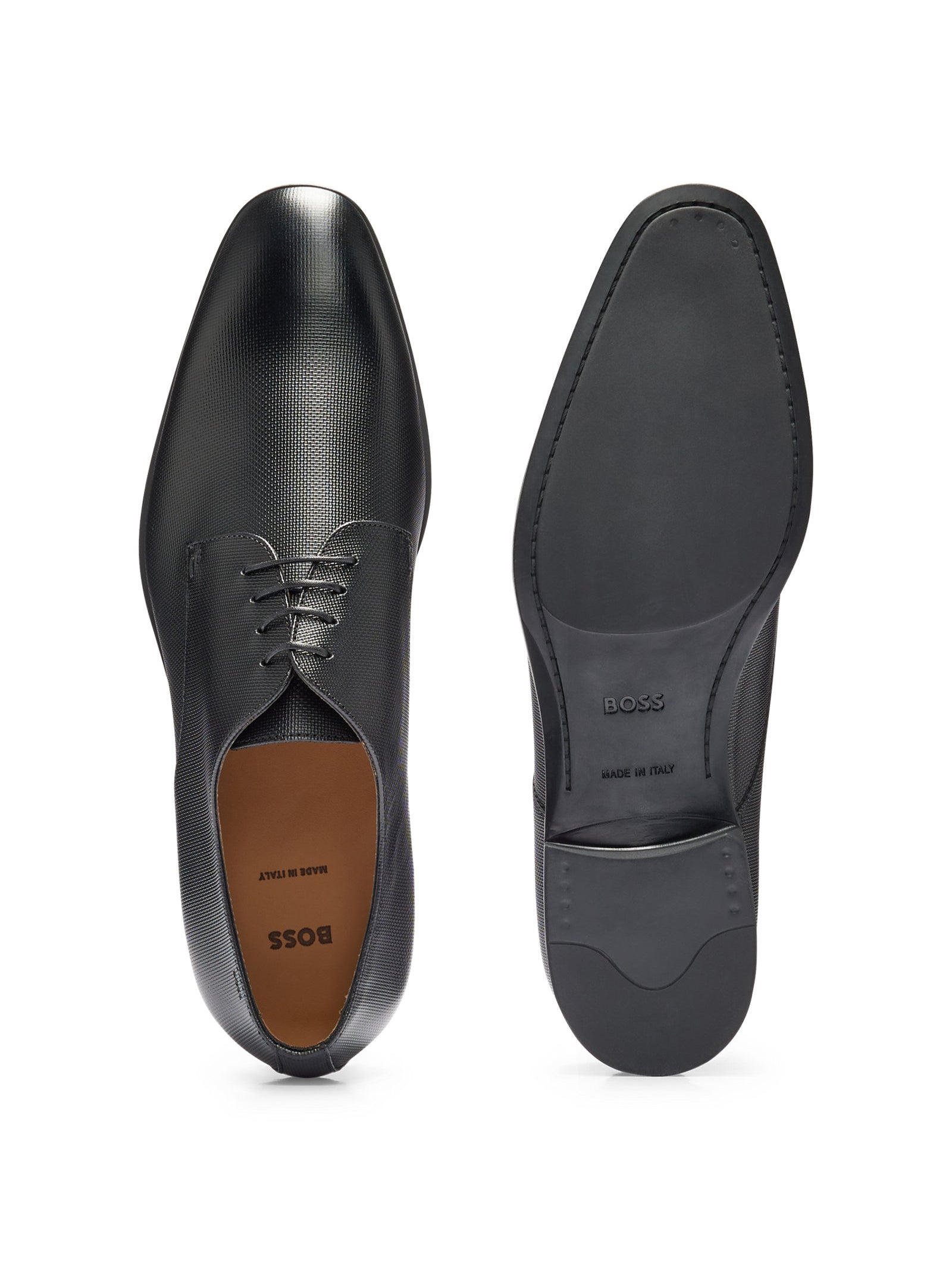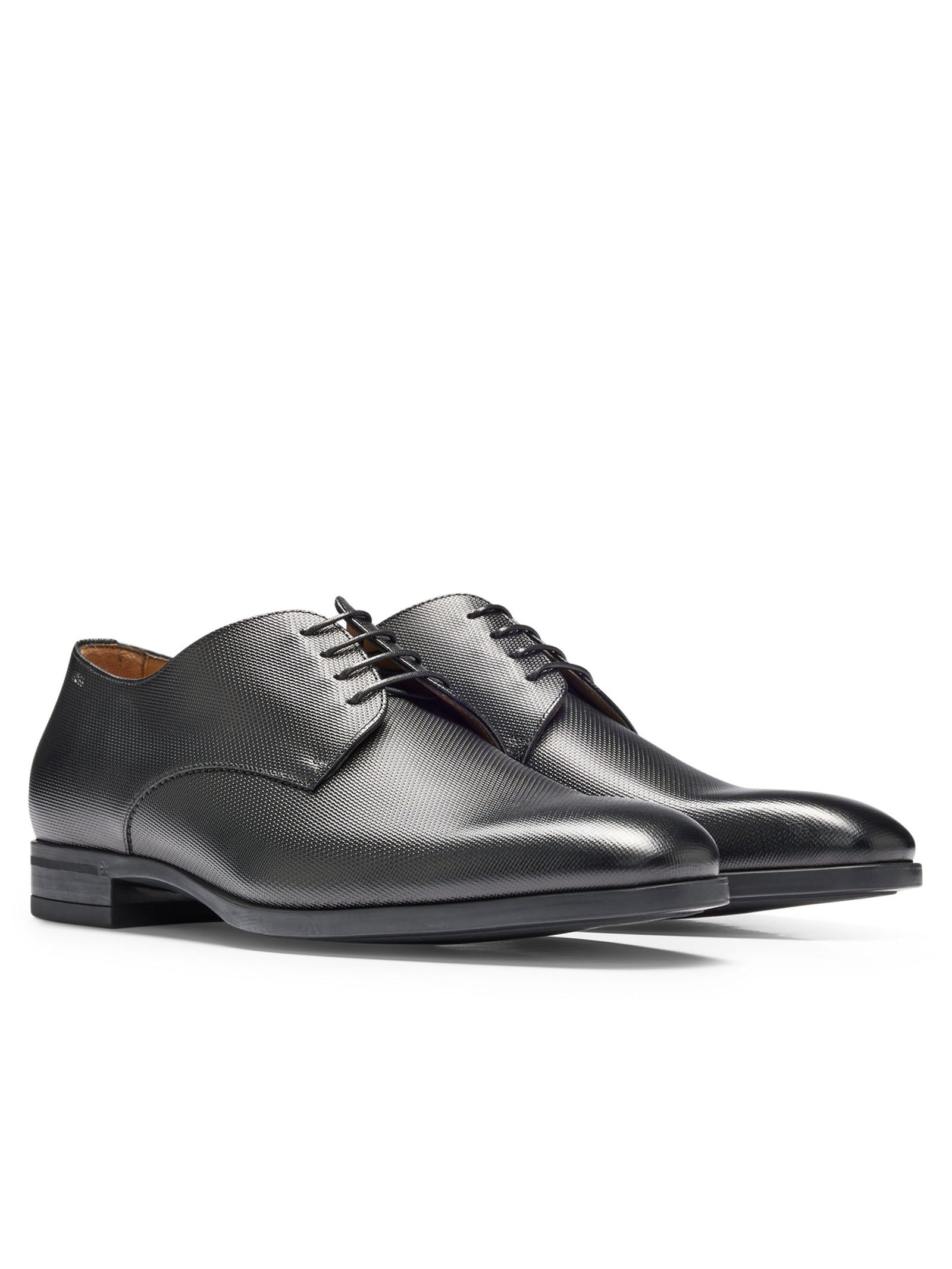 Zeitlose BOSS Herren-Derbys, die in Italien aus strukturiertem Leder gefertigt werden. Die gepolsterte Innensohle sorgt für hohen Tragekomfort.