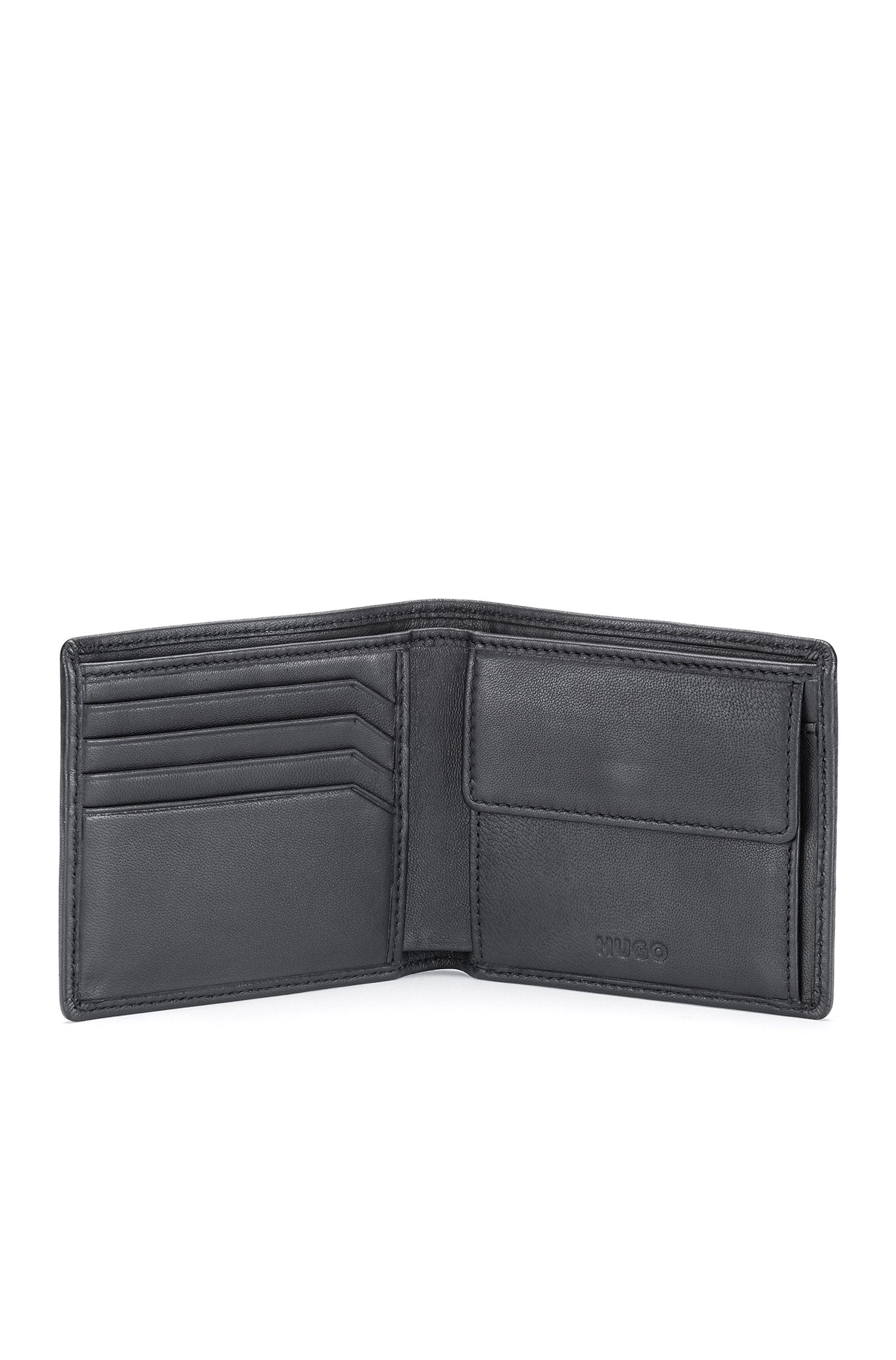 Zeitgemäße HUGO Geldbörse in einer ansprechenden Box. Das Portemonnaie aus weichem Leder mit glatter Haptik ist mit einer dezenten Logo-Prägung auf der Vorderseite versehen. Für unsere RESPONSIBLE Produkte verwenden wir mindestens 60 % nachhaltigere Rohmaterialien. Mindestens 60 % des Leders für dieses Produkt stammen aus zertifizierten Gerbereien, die mit umweltschonenden Methoden arbeiten, um die Auswirkungen auf den Planeten zu reduzieren. Mit dem Kauf dieses Produktes unterstützen Sie die nachhaltigere Lederherstellung durch die Leather Working Group (LWG). Wir verwenden nur Leder, das als Nebenprodukt in der Lebensmittelbranche anfällt.