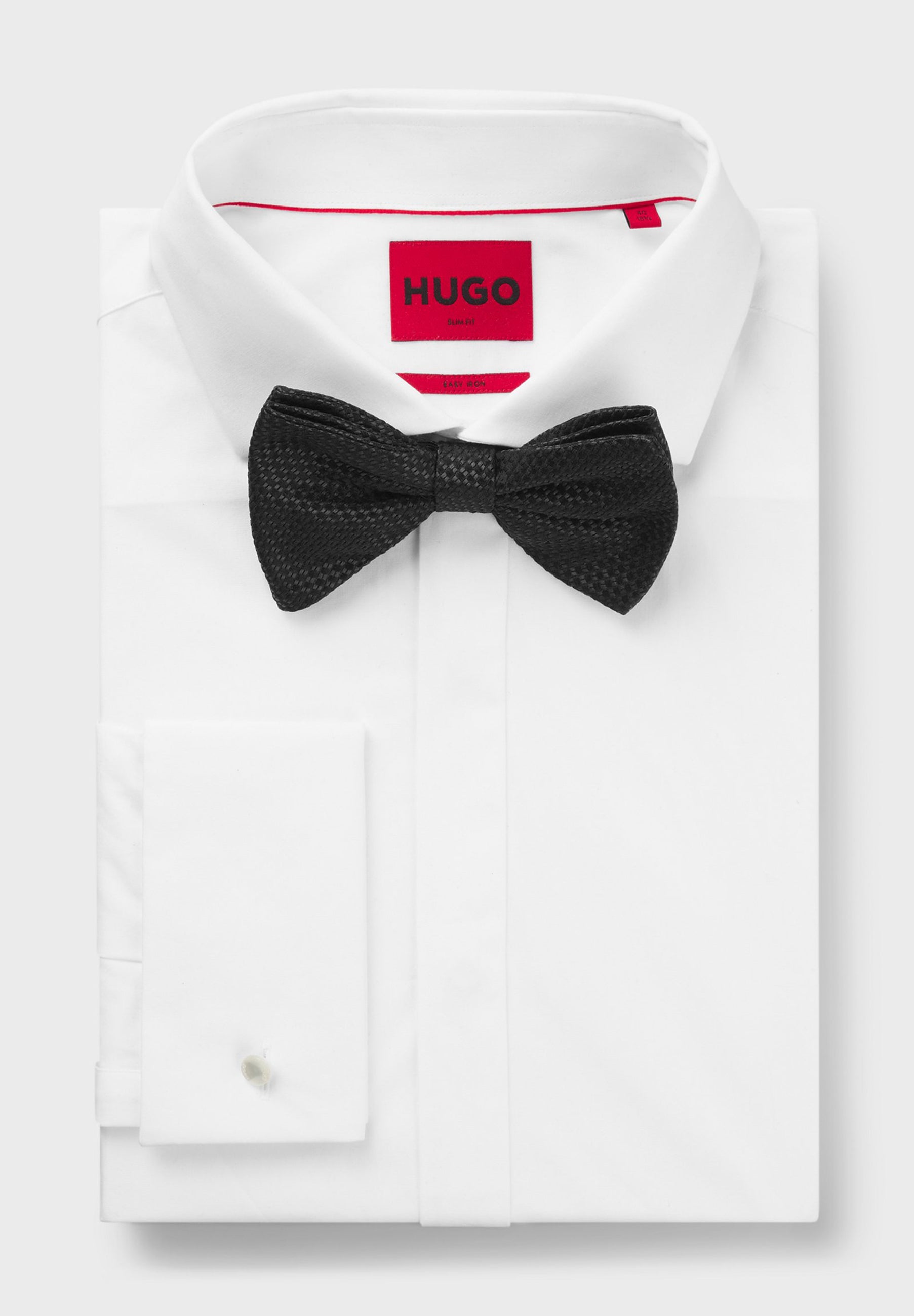 Die HUGO Fliege mit charaktervollem Jacquard-Muster verleiht formellen Looks das gewisse Etwas. Aus reiner Seide für einen edlen Touch.