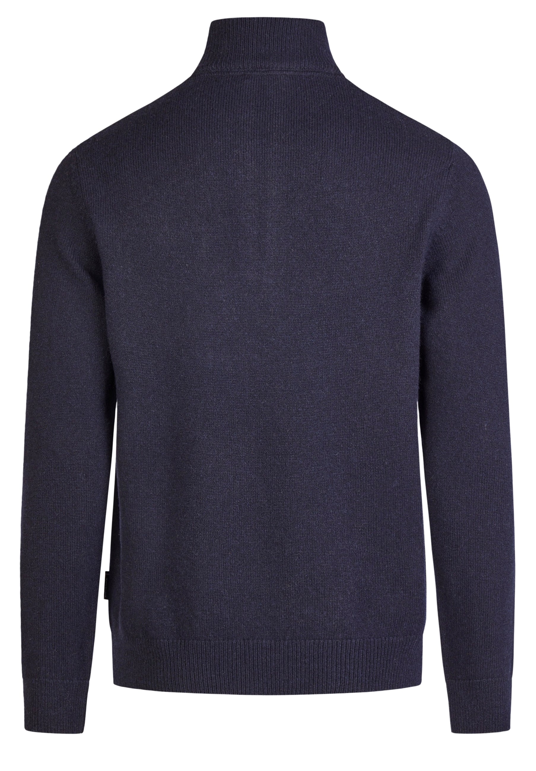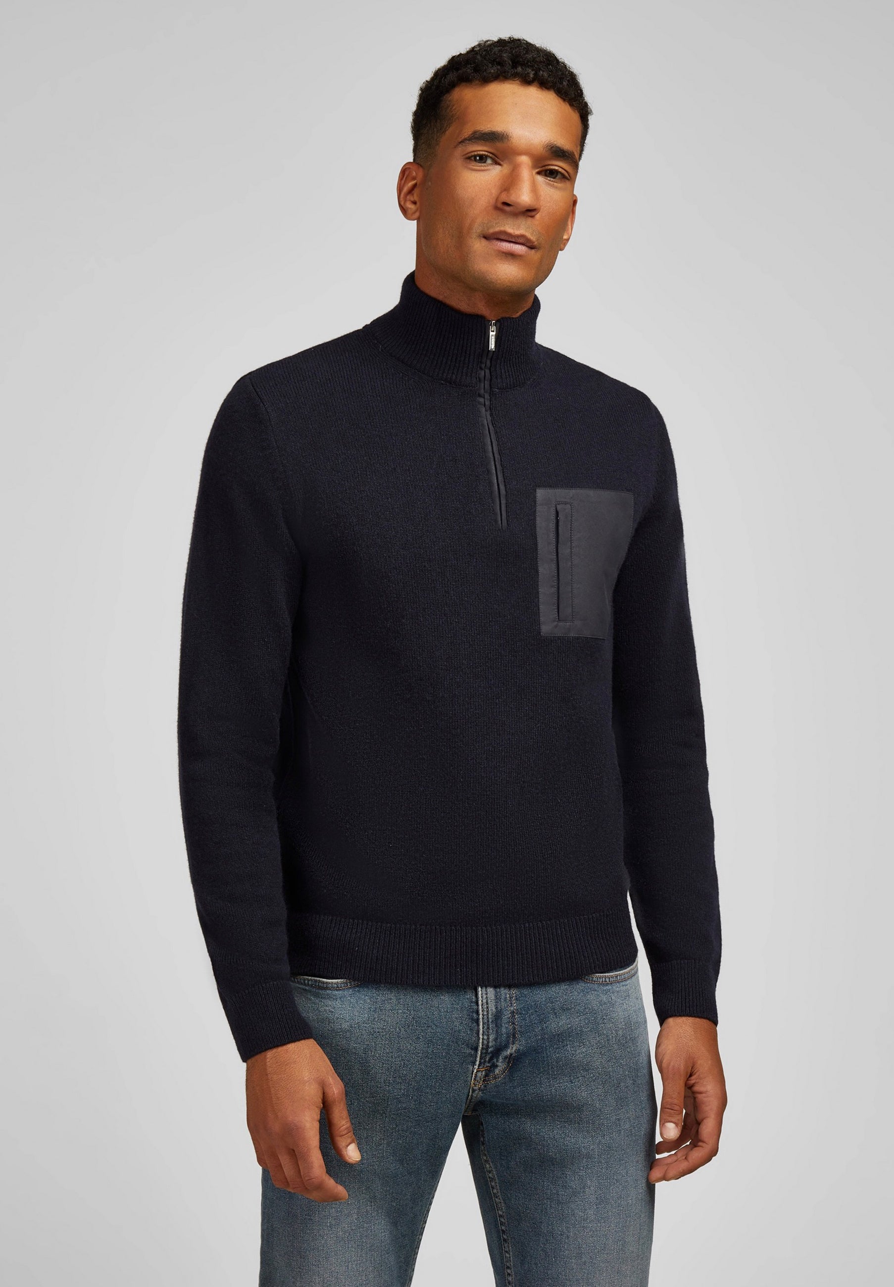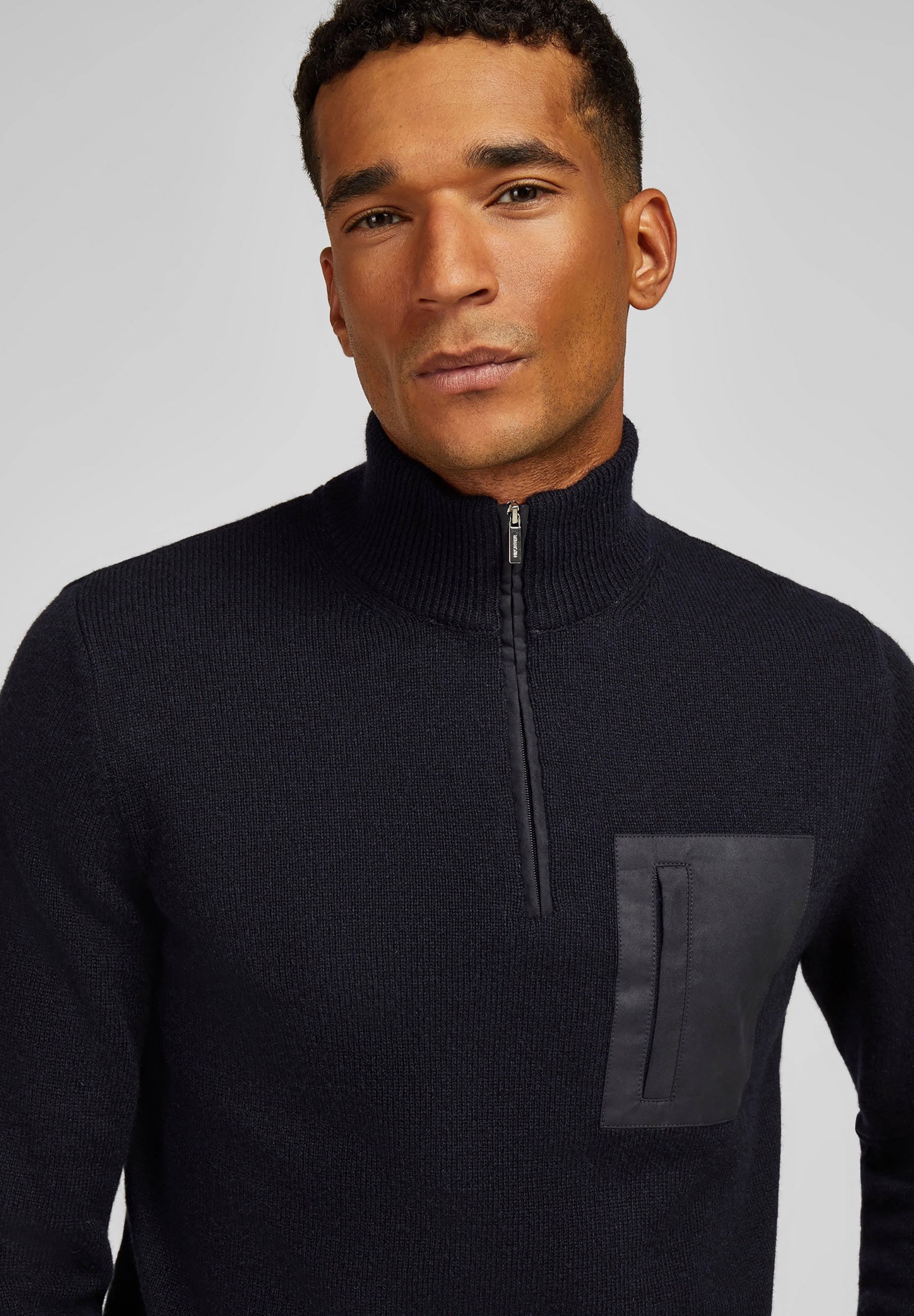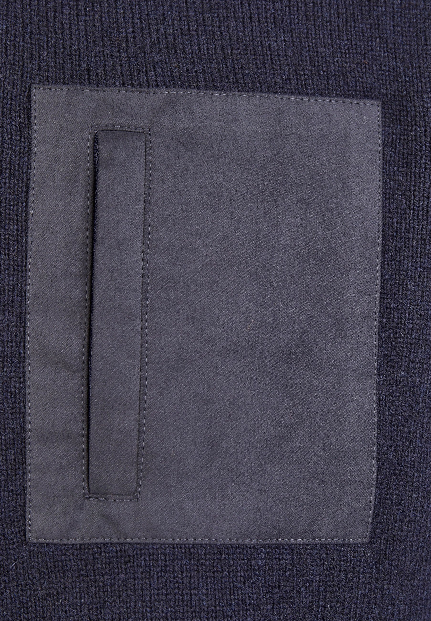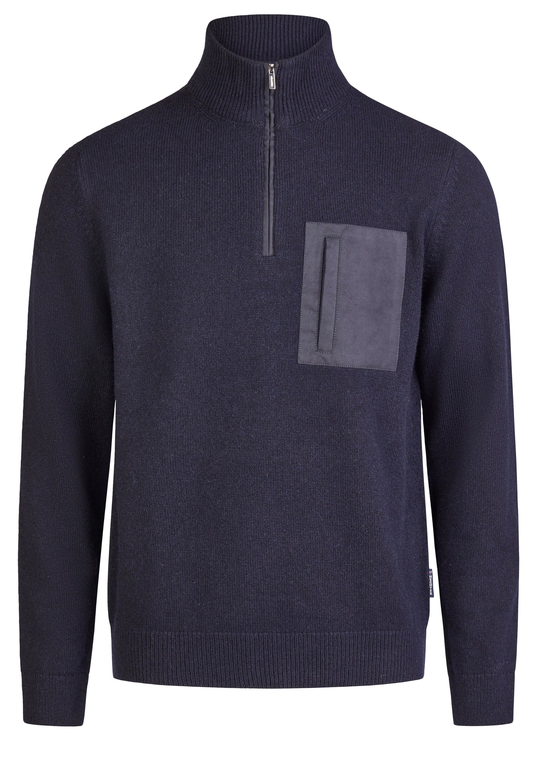 Der edle Zip-Troyer von HECHTER Paris ist aus einem luxuriösen Virgin-Woll-Mischgewebe gefertigt und mit einer Brusttasche aus Wildleder versehen, was ihm eine besondere Note verleiht. Der klassische Troyer-Schnitt wird durch den modernen Zip und das elegante Wildleder-Detail aufgewertet. Das dezente Flag-Label rundet das Design ab und macht diesen Pullover zu einem vielseitigen, stilvollen Highlight für jede Garderobe.