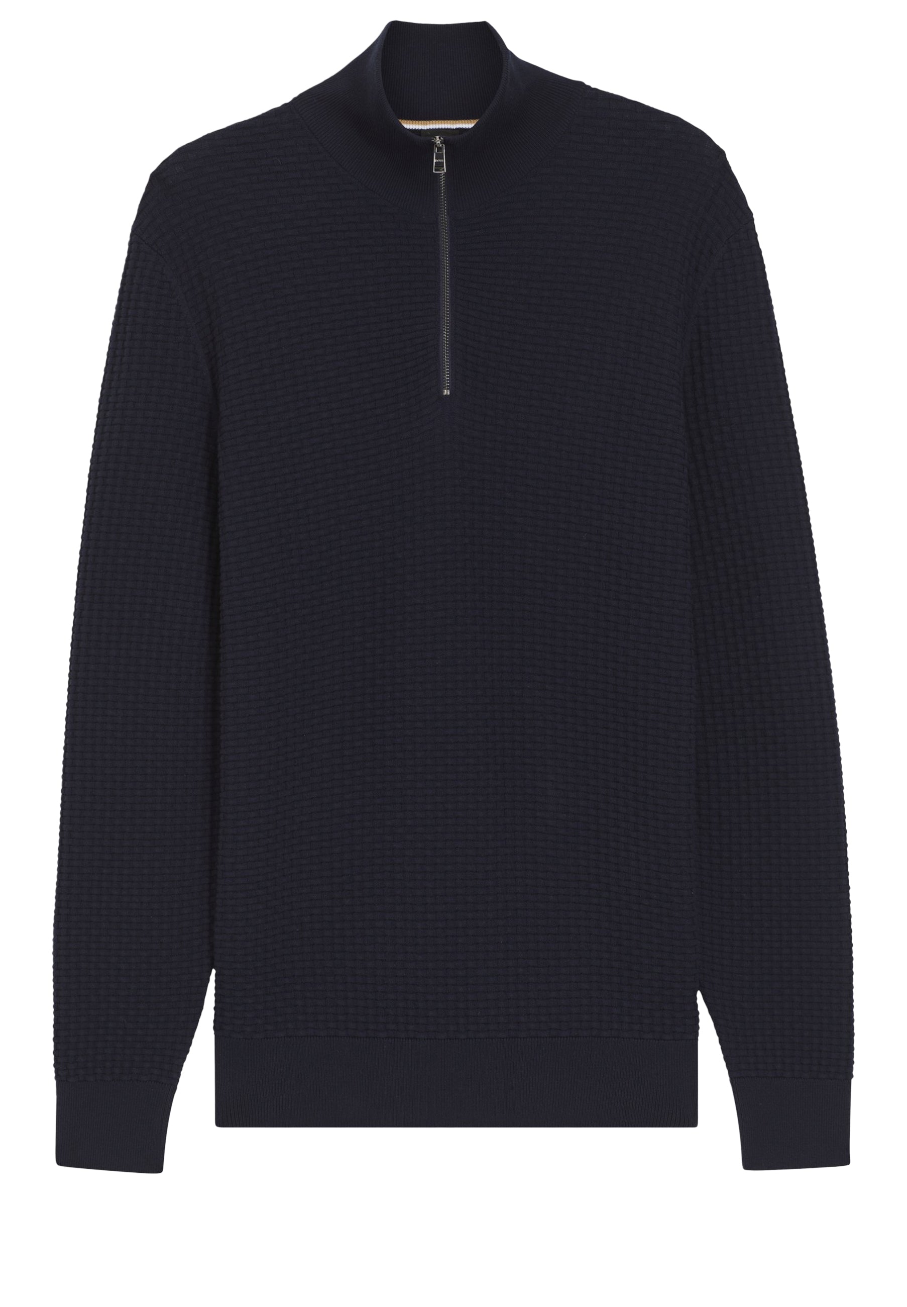 Dieser BOSS Menswear Pullover ist ideal für Layering bei kühlerem Wetter und hat eine gerade Passform und einen Viertelreißverschluss. Reichhaltige Struktur aus weicher Baumwolle.