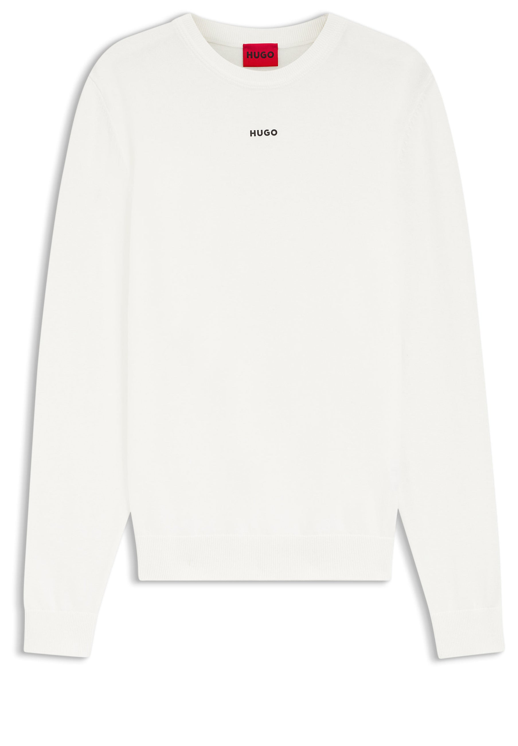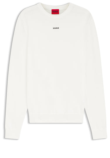 Verpasse deinem Look mit diesem HUGO Pullover aus softem Baumwoll-Strick mit kontrastfarbenem Logo ein Update. Zeitgemäße schmale Passform.