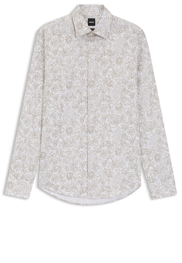 Aus weicher Popeline aus Stretch-Baumwolle hat das BOSS Menswear Hemd einen zeitgemäßen Allover-Print. Maßgeschneidert auf eine einfache, gleichmäßige Passform.