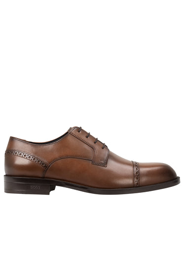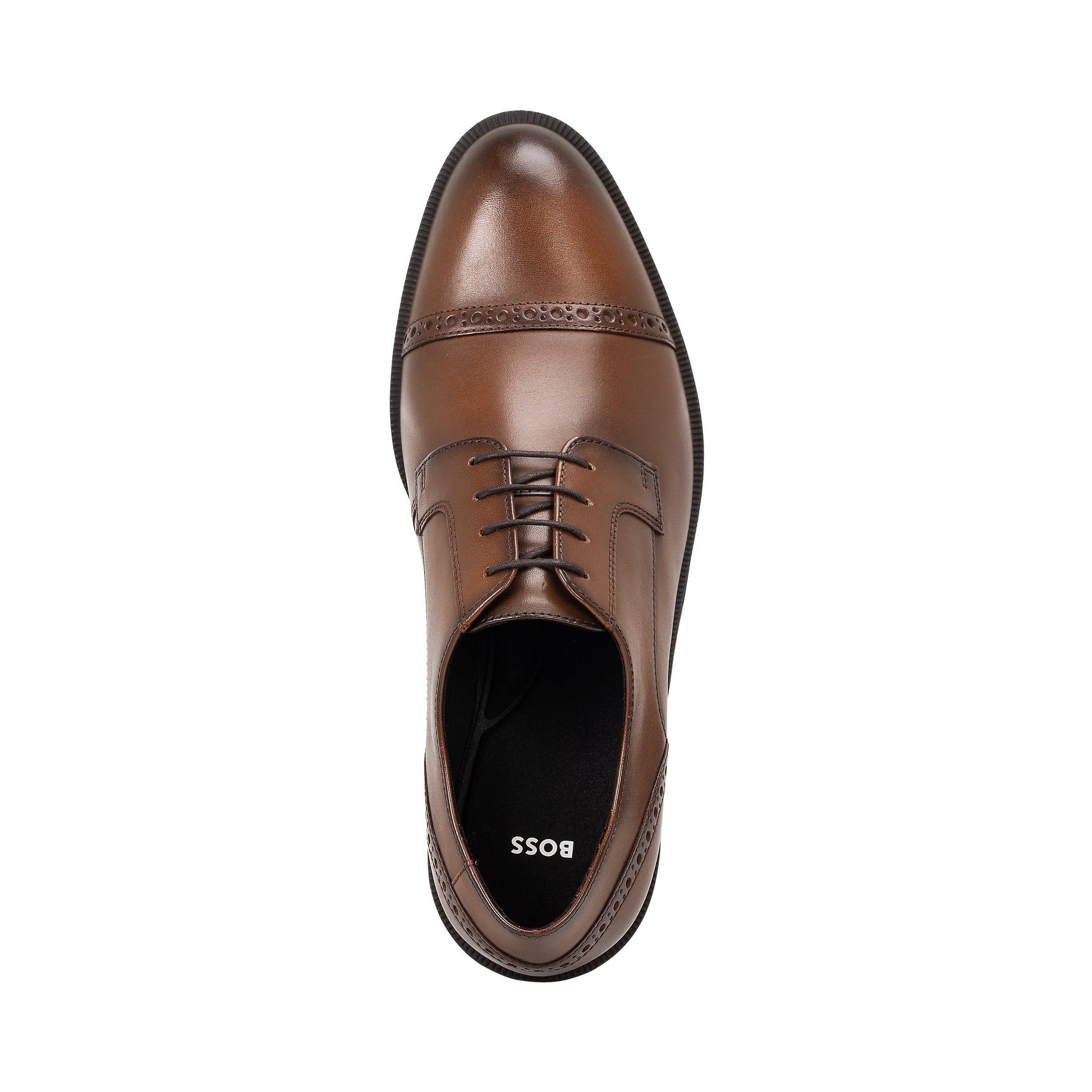 Diese BOSS Derbys aus Glattleder mit detaillierten Brogue-Perforationen verleihen deinen Business-Looks das gewisse Etwas. Mit dezenten Logo-Details.