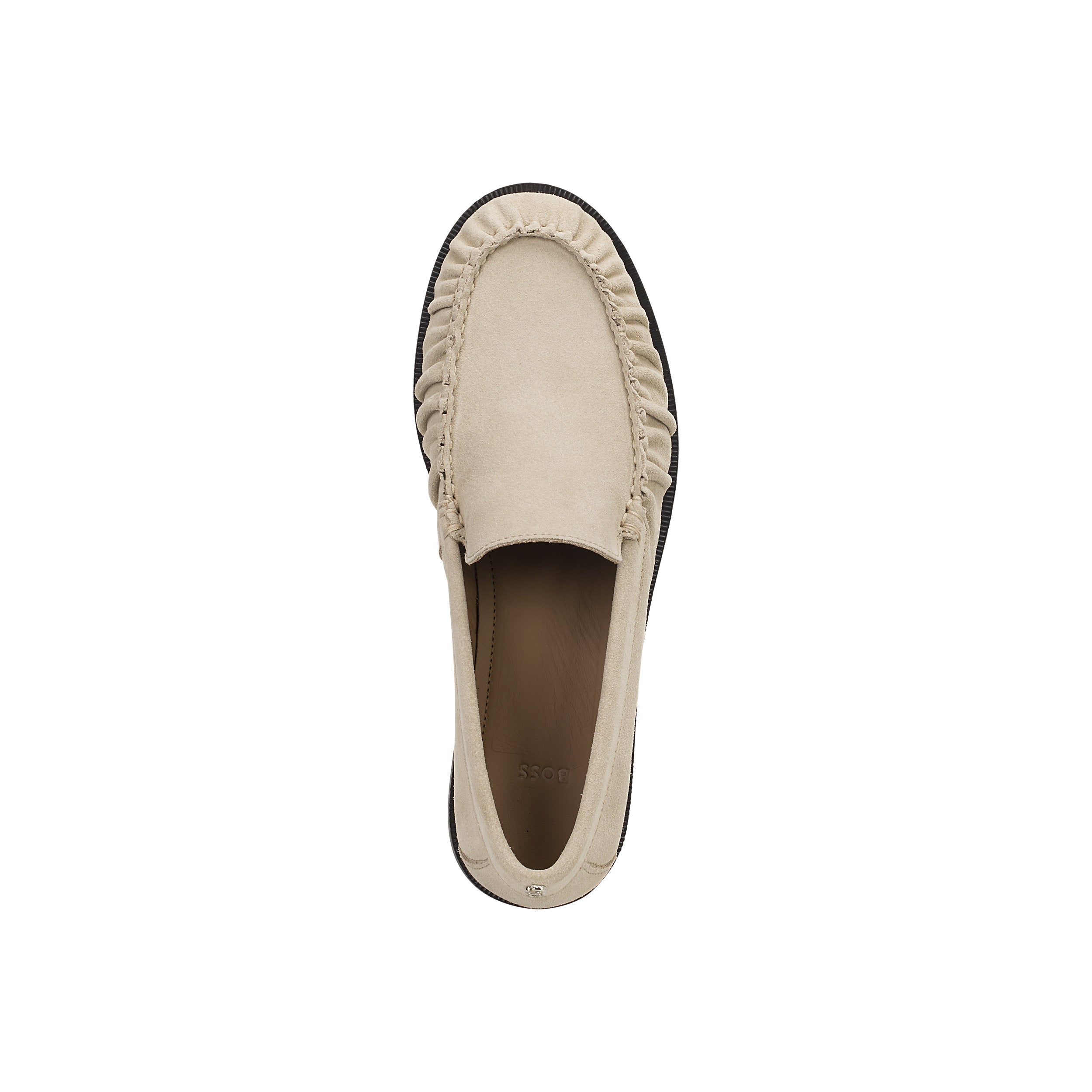 Die BOSS Loafer aus Veloursleder sind ein modernes Must-have. Sie verleihen einem Klassiker mit strukturierten Raffungen ein Update. Goldfarbenes Double-B-Monogramm an der Ferse.
