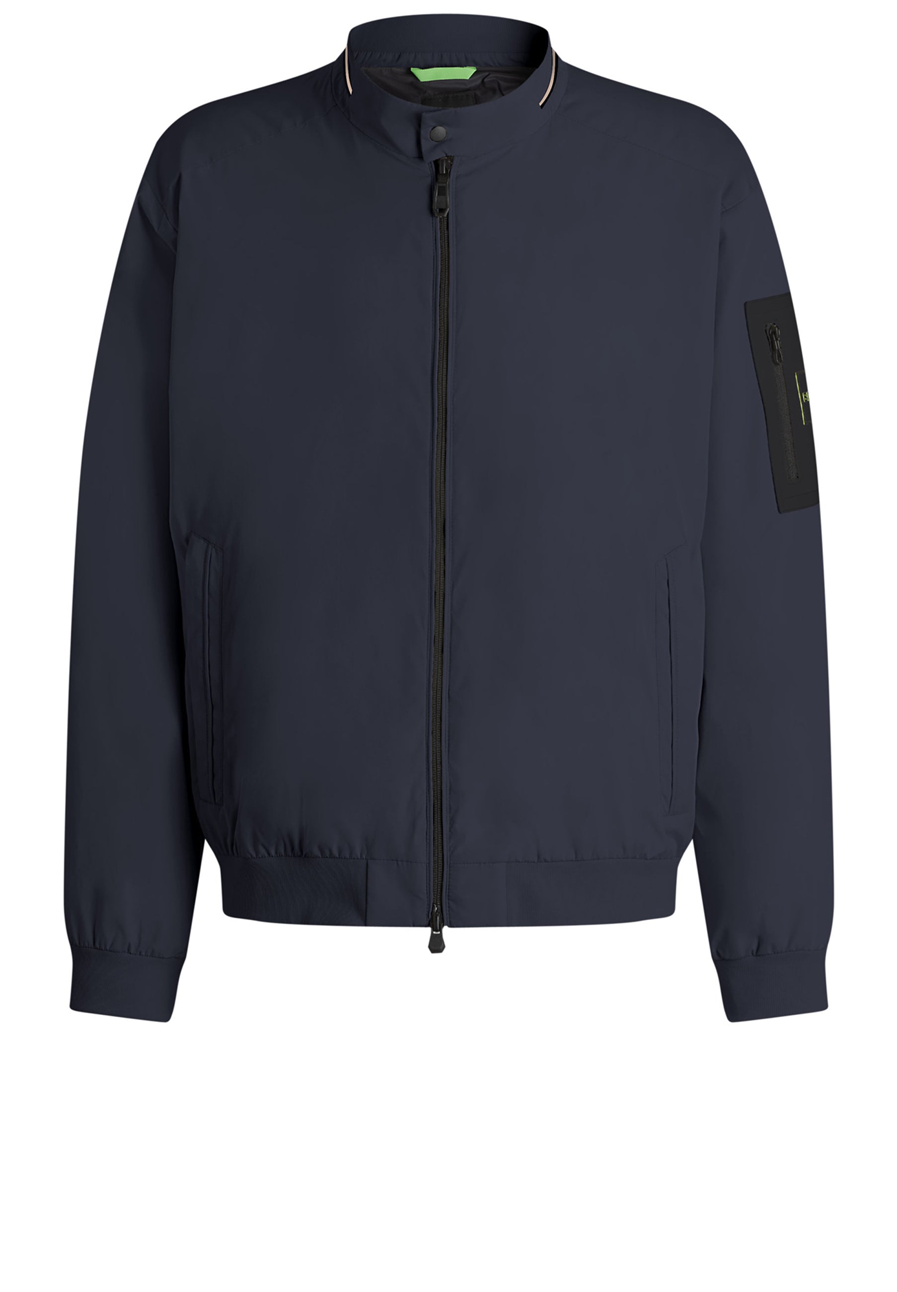 Leichte und schützende BOSS Jacke mit gerader Passform, ein Must-have für die Übergangszeit. Ärmeltasche mit Reißverschluss. Charakteristische doppelte Paspelierung am Kragen. Atmungsaktives Mesh-Innenfutter.
