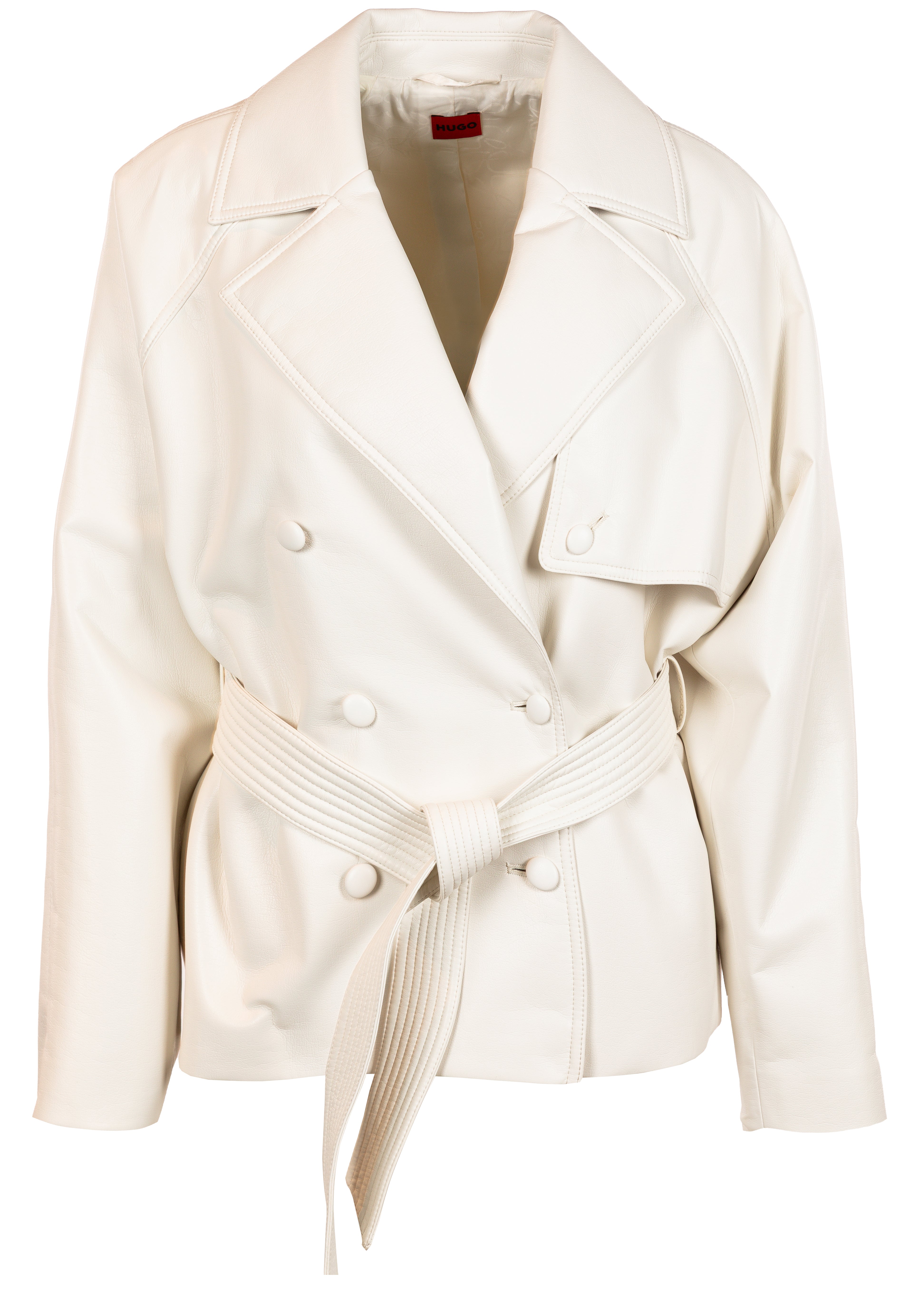 Kunstlederjacke Aisandi-1 von HUGO im Regular Fit mit Reverskragen. Doppelreihige Knopfleiste, Bindegürtel und seitliche Eingrifftaschen.