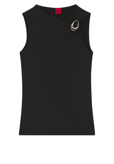 Das HUGO Top aus schimmerndem, fließendem Gewebe sorgt mit seinem glänzenden Logo-Detail für einen zeitgemäßen Look. Ärmellos, gerade Passform.