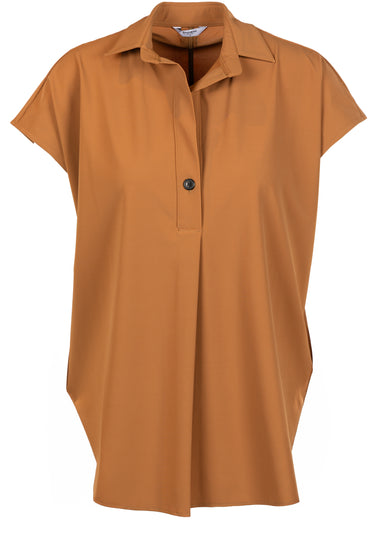 Diese Bluse besticht durch ihre lockere Passform, kurze Ärmel und einen eleganten Kragen für einen modernen, unkomplizierten Look. Die schlichte Knopfleiste und die fließende Silhouette machen sie zu einem vielseitigen Kleidungsstück.