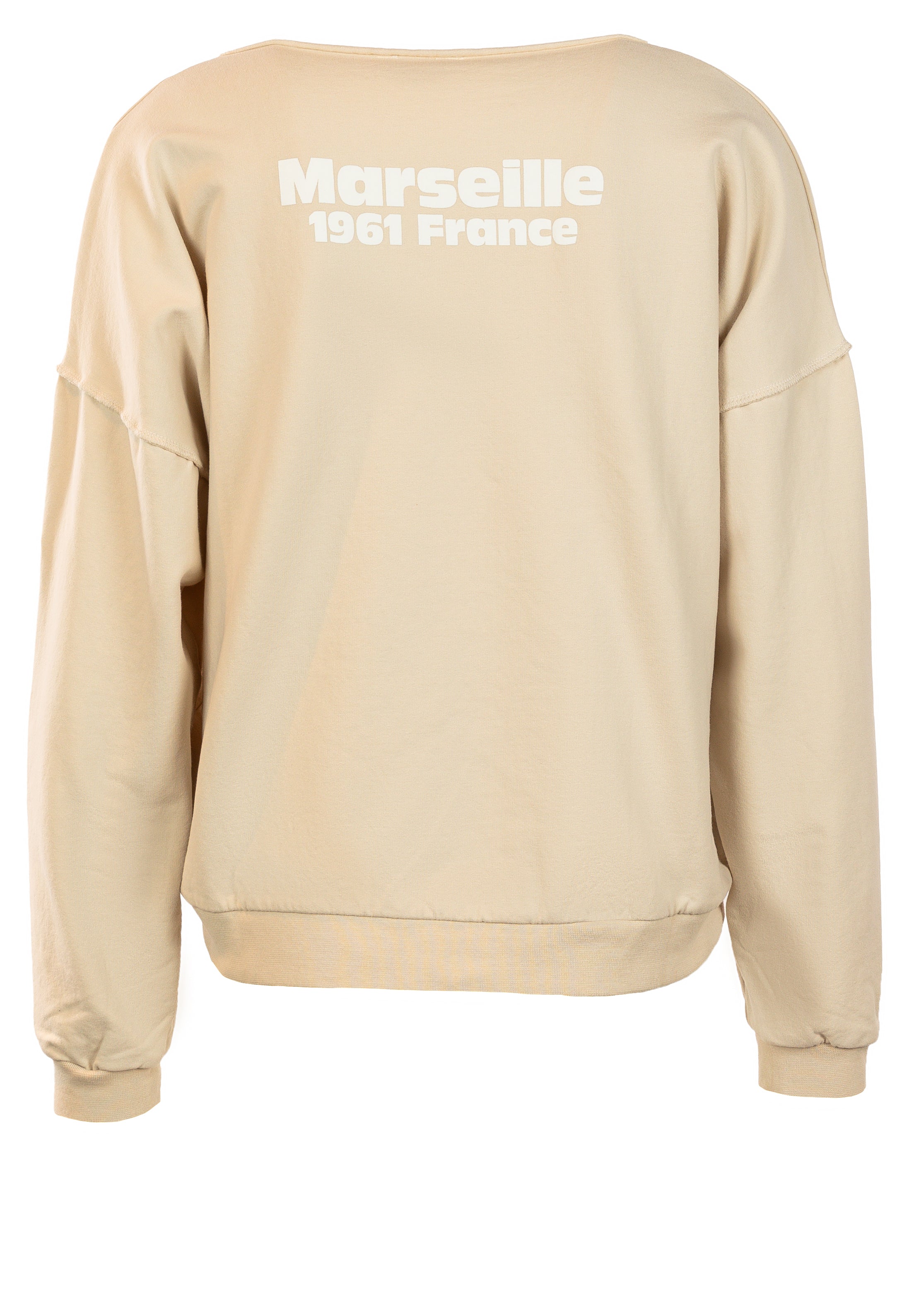Sweater von PENN & INK N.Y. mit V-Ausschnitt und lockerer Passform. Mit „Marseille“-Print auf der Rückseite und seitlicher Logo-Flag.
