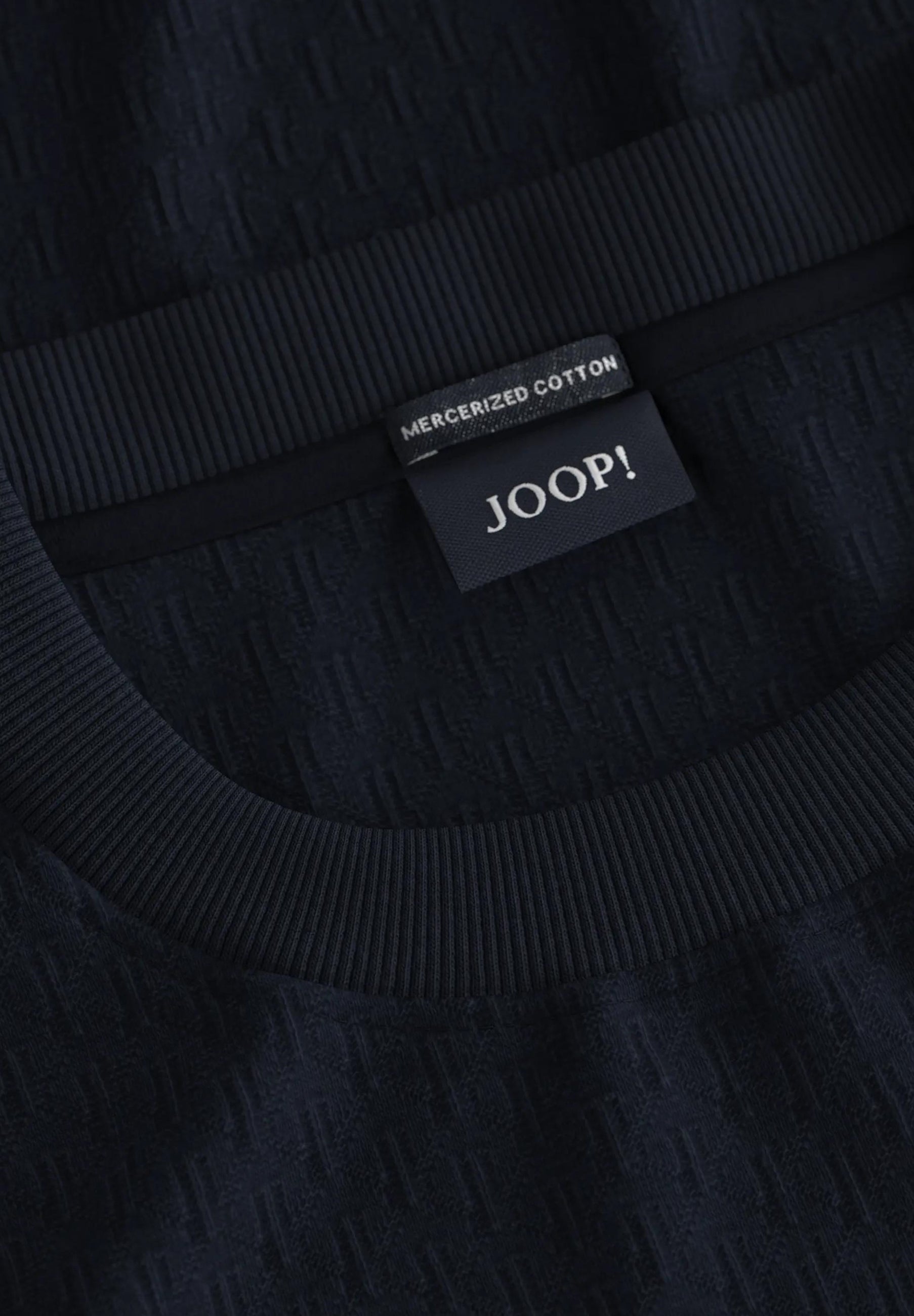 T-Shirt Enrique von JOOP! im Regular Fit mit Rundhalsausschnitt. Aus Baumwolle gefertigt, mit Strukturdesign, seitlicher Label-Flag und geradem Saumabschluss.