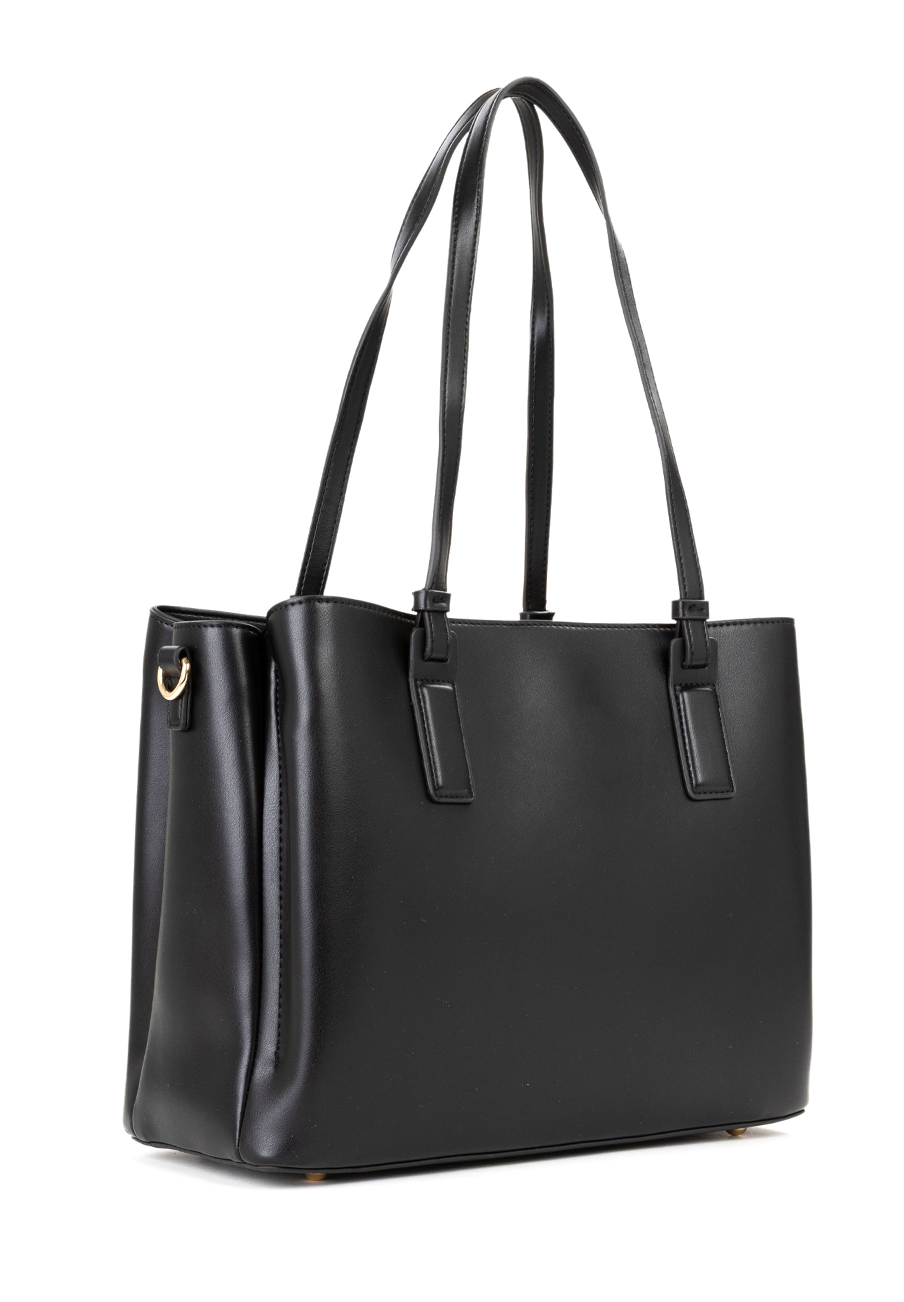 Dieser schwarze Shopper verbindet zeitloses Design mit funktionaler Raffinesse und ist ein stilvoller Begleiter für jeden Anlass.