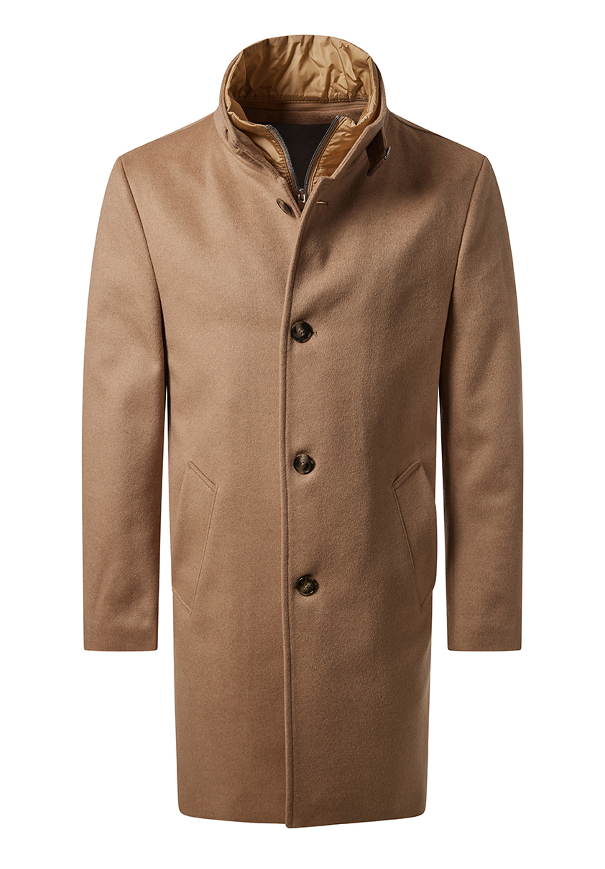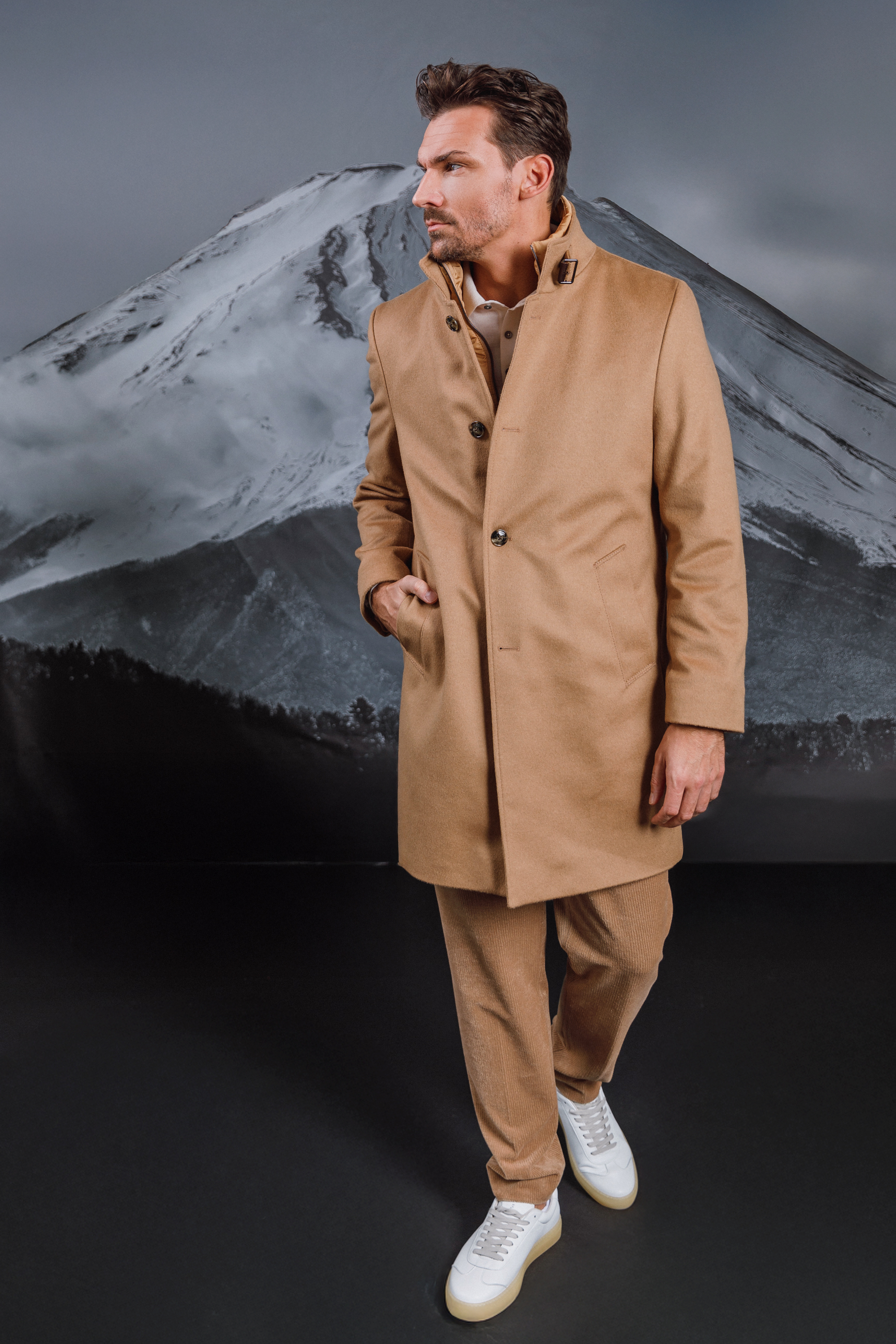 Dieser hochwertige Camel-Mantel von BALDESSARINI vereint zeitlosen Stil mit moderner Eleganz. Die klare Schnittführung, die edle Knopfleiste und der dezente Stehkragen verleihen dem Mantel eine anspruchsvolle Silhouette – perfekt für Business, City oder besondere Anlässe.