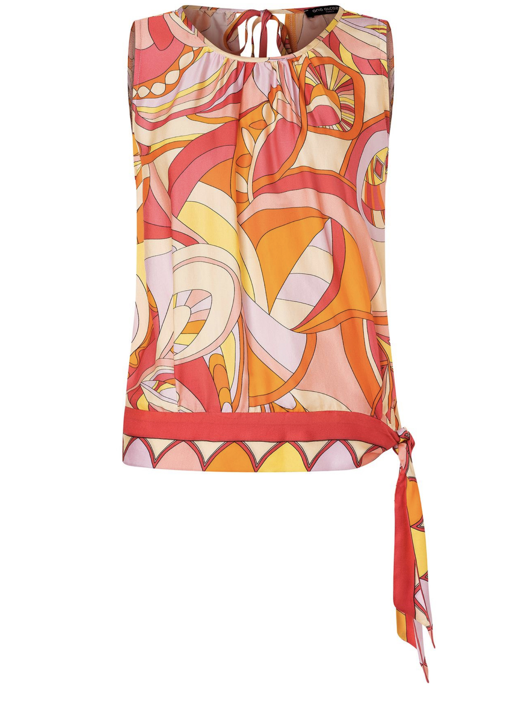 Das ärmellose Satintop Patisa ist der ultimative Style-Boost für deinen Sommerlook. Der fantasievolle Print in den pastelligen Sommerfarben Orange, Rosa & Gelb verleiht dir eine frische Ausstrahlung.